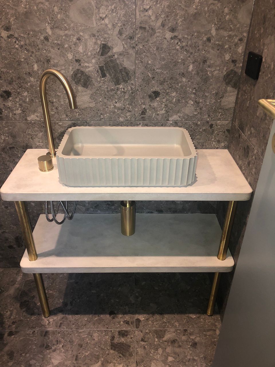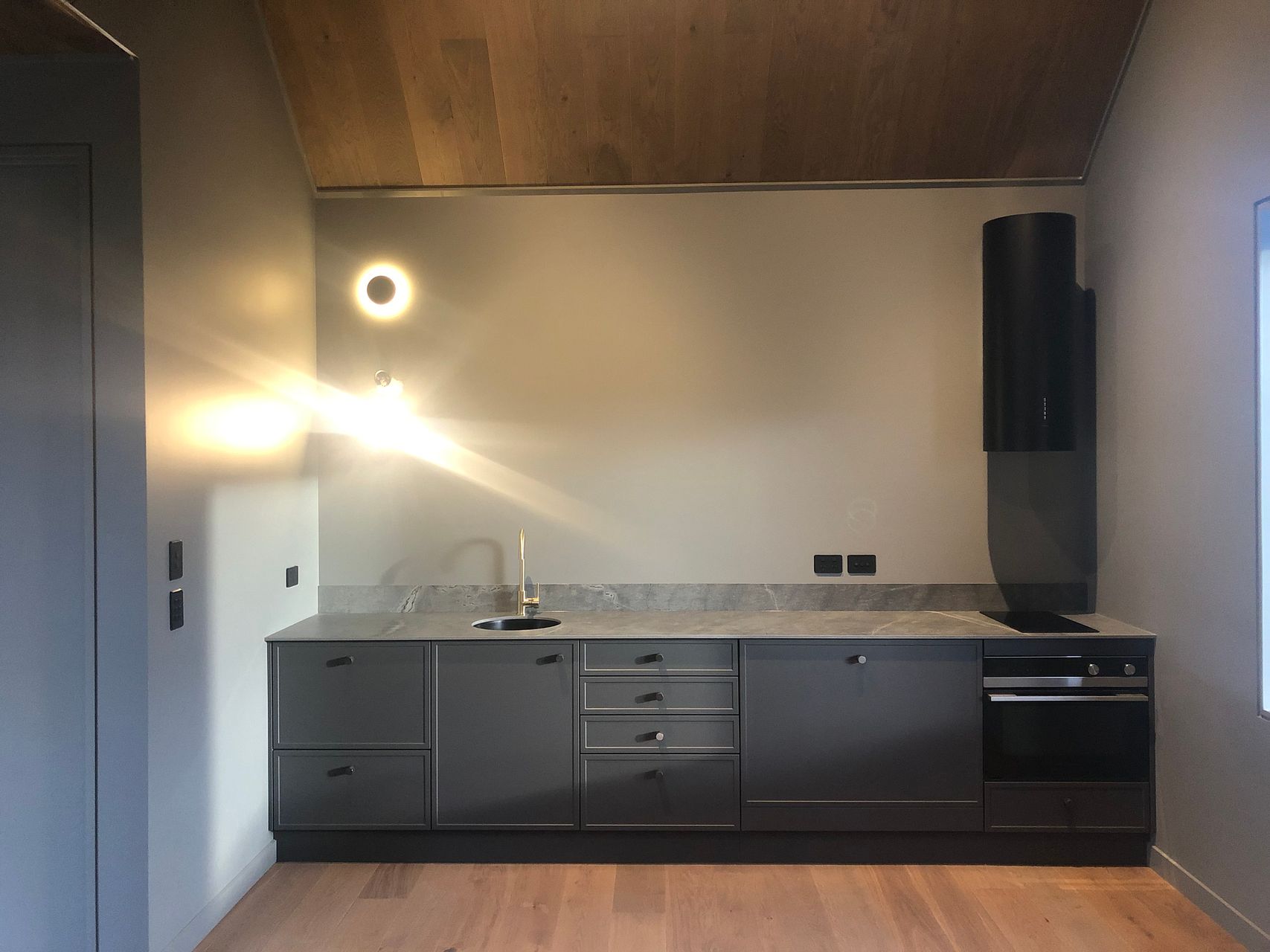 - Kitchen features include: porcelain bench top, round granite sink, Fisher & Paykel 'CoolDrawer', induction cooktop