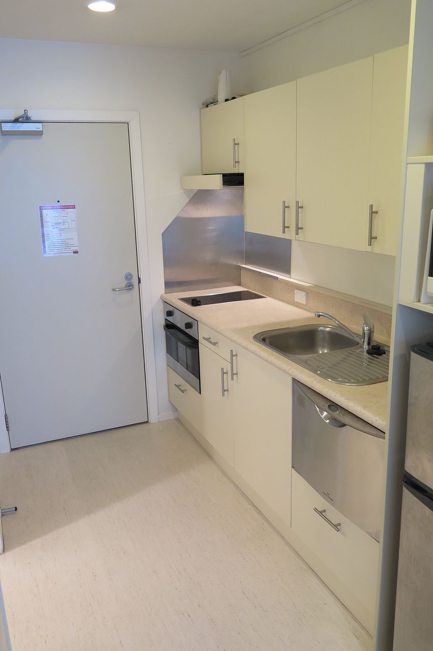 The studio has the bedroom and living area in one open area so that you have the flexibility to utilise the space in the way the best suits you. We provide all the furnishings you need to live - just bring your clothes!