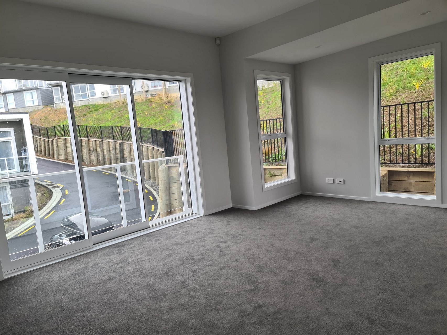 This two-storey townhouse has a 2 car parks, living & kitchen upstairs, bathroom & 3 bedrooms downstairs.