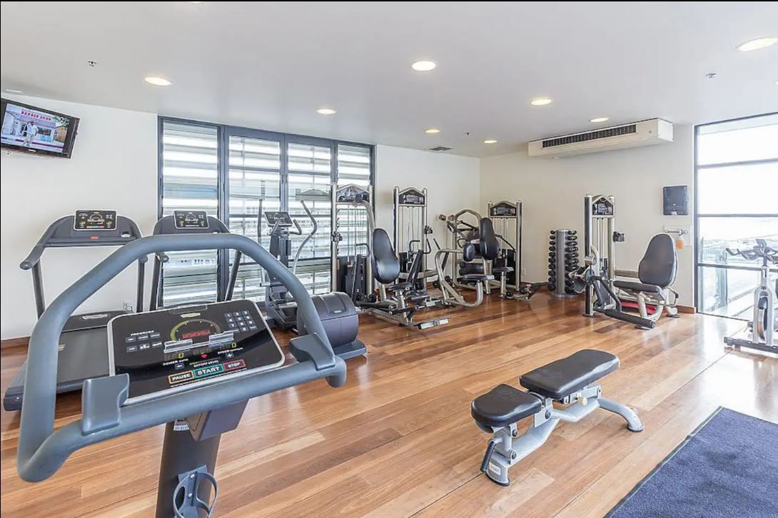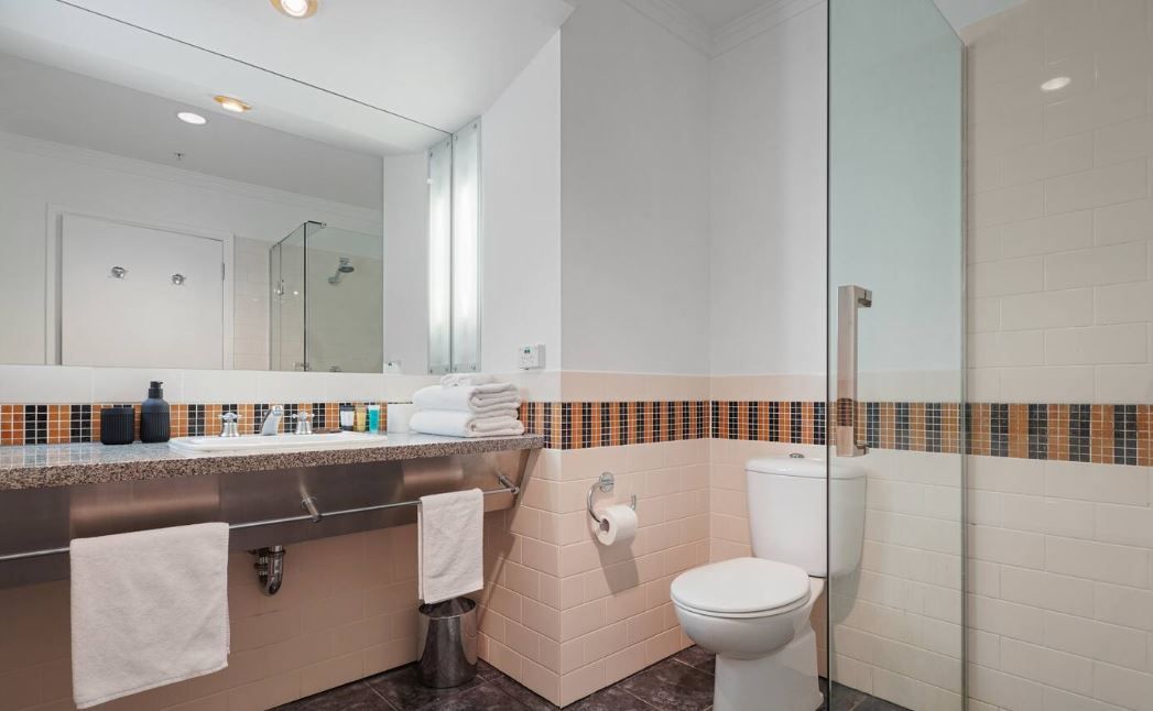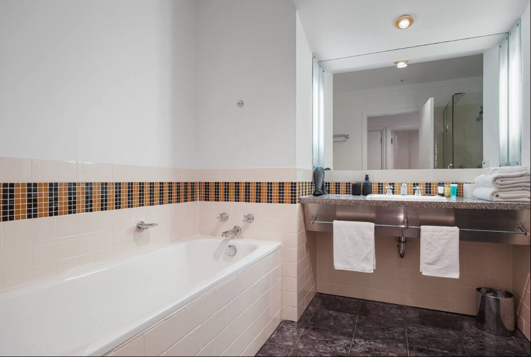 Living in this hotel complex comes with many added perks that other city apartments don't have—air conditioning, a bathtub, and free access to the wonderful resort-style facilities onsite: indoor heated lap pool, sauna, tennis court, two gyms, rooftop swimming pool, and spa with outdoor furniture overlooking the harbour, plus an onsite restaurant!