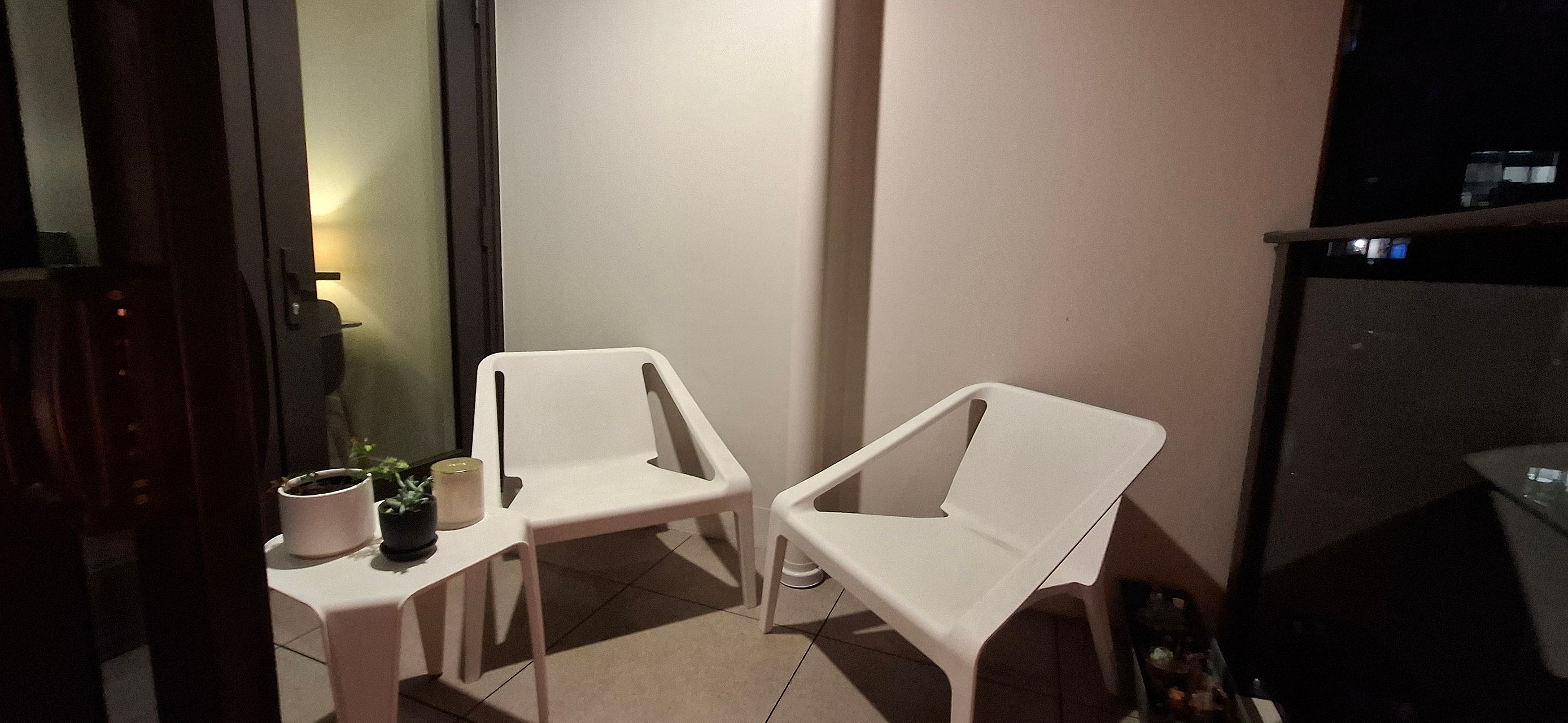 - Two chairs and table to enjoy on the balcony