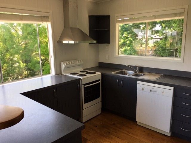 This two-bedroom unit is set on a large tree-clad site,