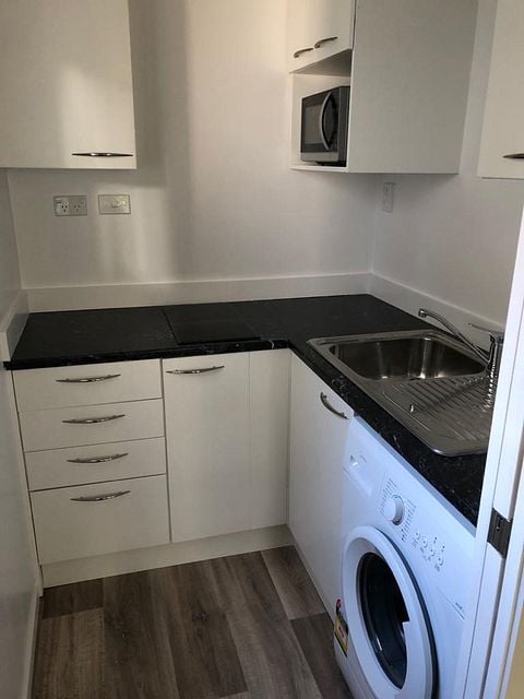 The sleepout is a reasonable size and is ideal for a single person. It was completely renovated 3 years ago and is in an excellent condition and is Healthy Home compliant. It can easily fit a queen size bed and other furniture. It has a small kitchen which has plenty of cupboard space, microwave, hotplate and a small fridge. The bathroom has a shower and a mirror in it. There is a laundromat at the end of the street.