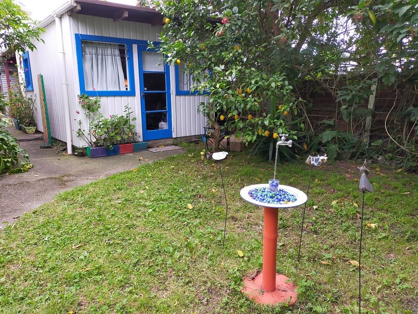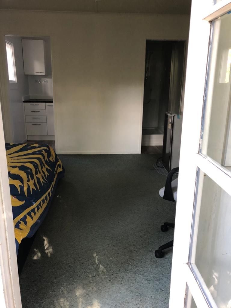 The unfurnished sleepout is located in a large, sunny tropical garden in a quiet cul-de-sac. It is completely private and there are lots of fantails and tuis. It is situated close to the main house that has 2 independent flatmates in it who are quiet but friendly.