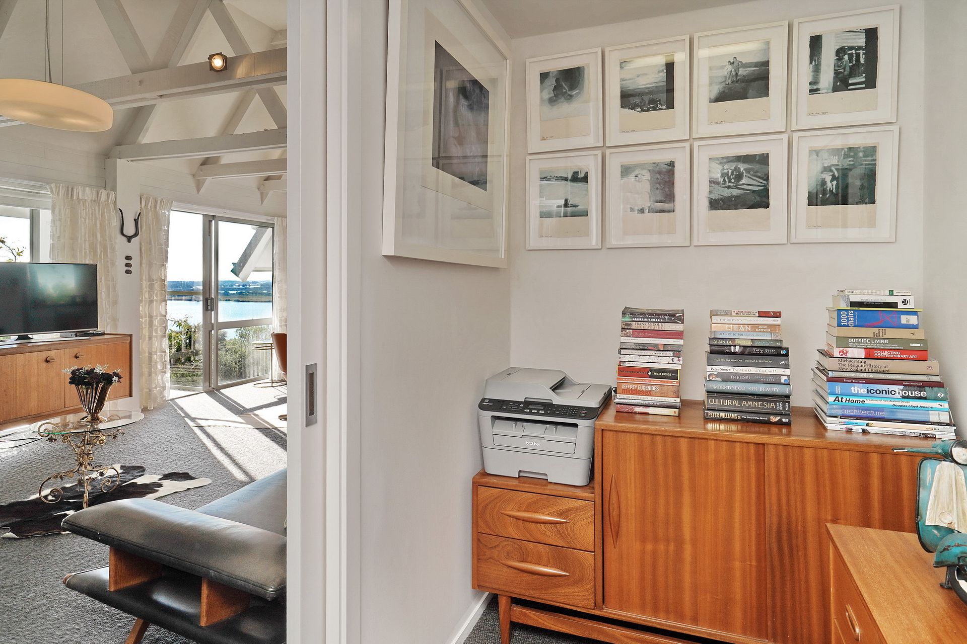 The apartment is styled with retro furniture and contemporary art. The layout comprises of two bedrooms, dual access to bathroom, open plan lounge and dining.