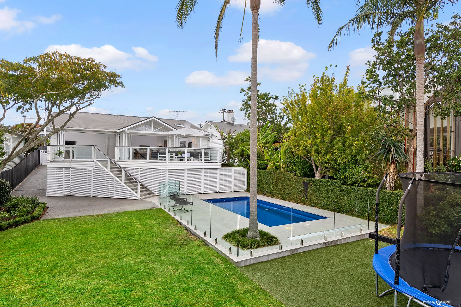This is a 4 bedroom home with heated pool, large sunny lawn and separate studio, with a North-west facing 721m² section. This home is available to rent unfurnished from late November.