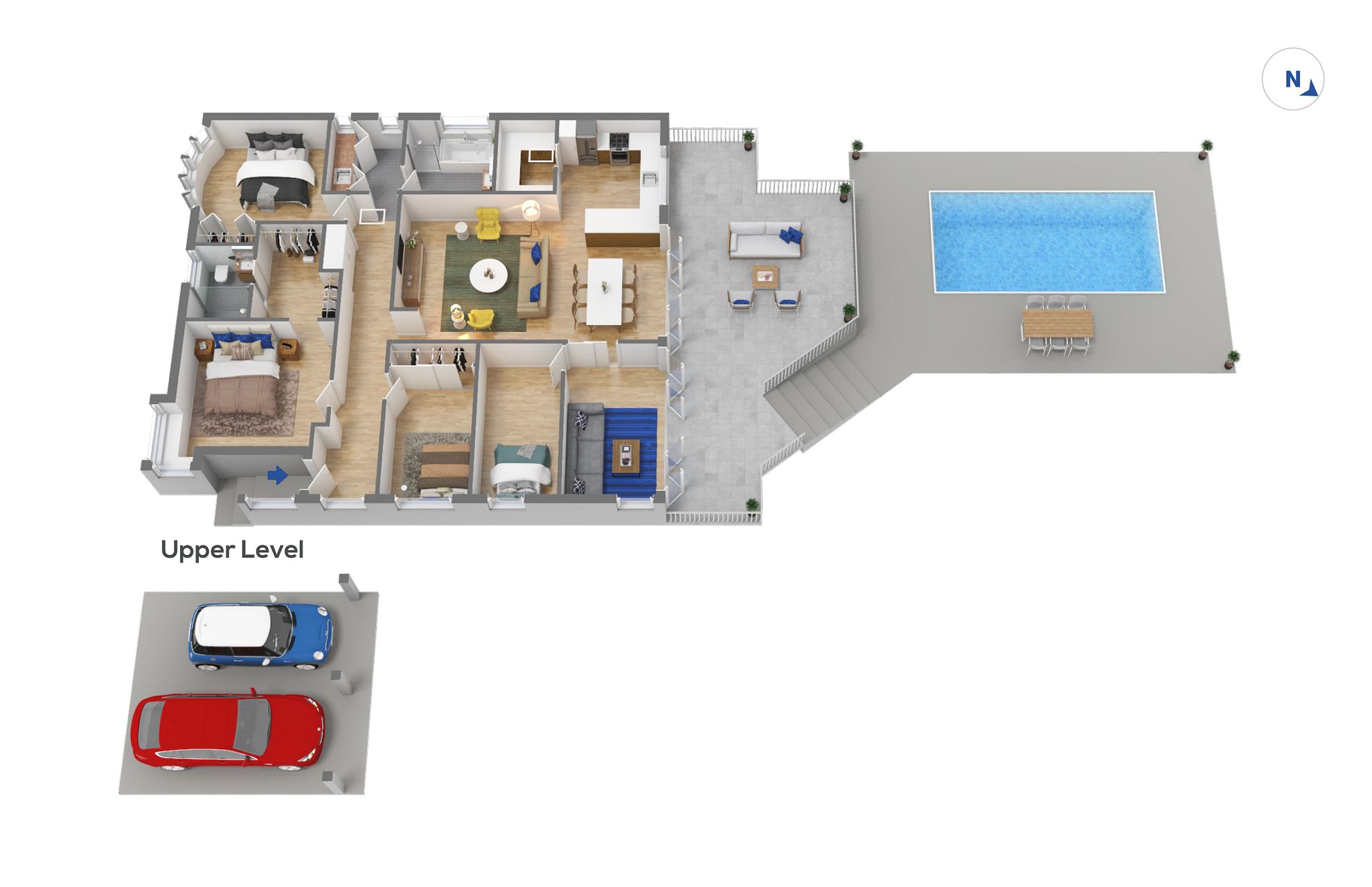 Double covered carport plus additional secure parking for a further two vehicles.