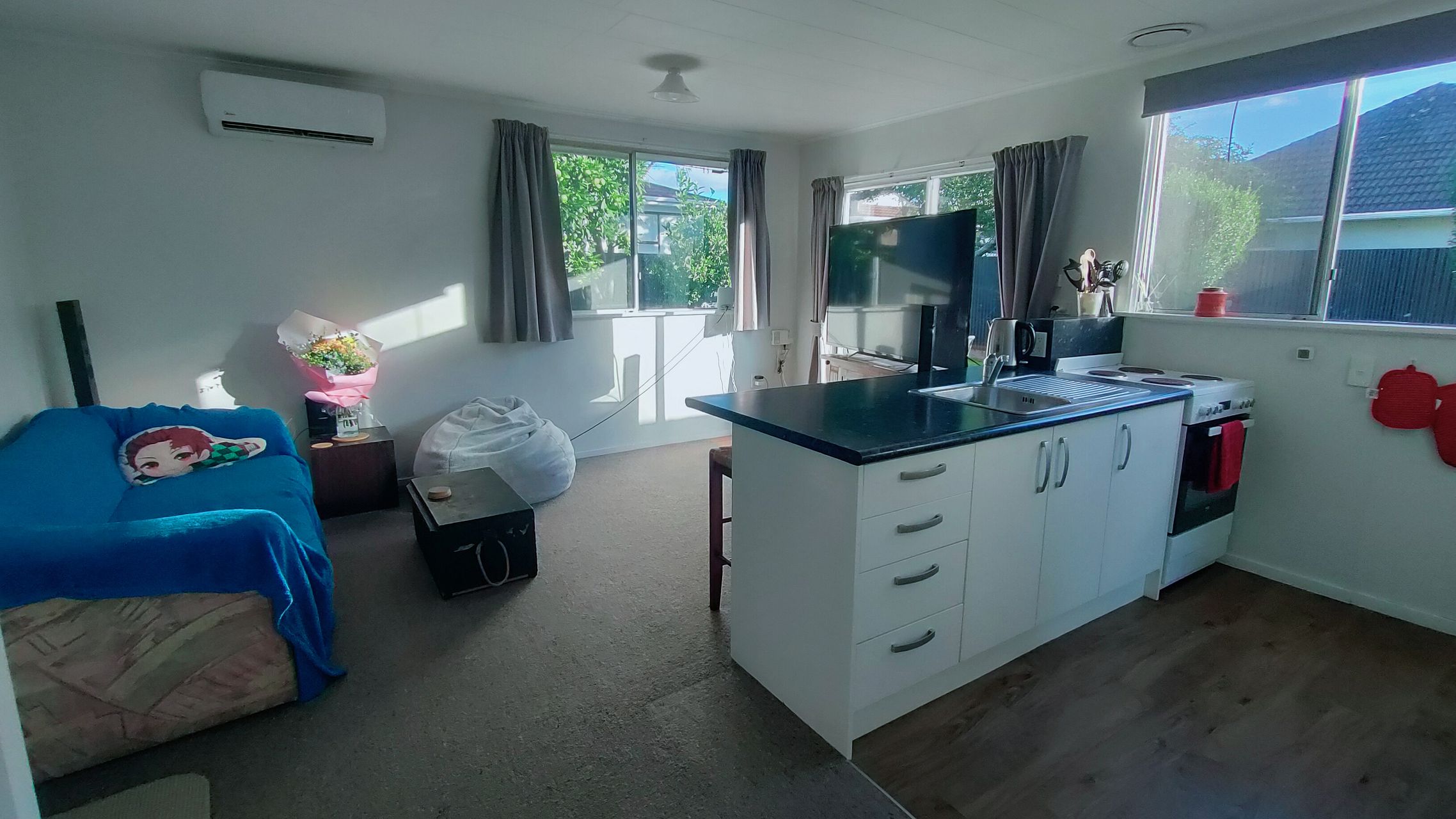 A well appointed 2 bedroom flat in walking distance to Upper Hutt City Centre, parks and Oxford Crescent school. One of 2 flats, this back flat is private and fully fenced with a ranch slider leading on to a deck which gets great afternoon sun. A good size garden shed allows for storage. With modern kitchen and bathroom, this property will suit a small family, couple, retirees or flatmates. The bathroom contains a shower, wc and vanity as well as a laundry area. A heat pump located in the living area easily heats and cools the entire flat. It is carpeted throughout with vinyl flooring in kitchen and bathroom.