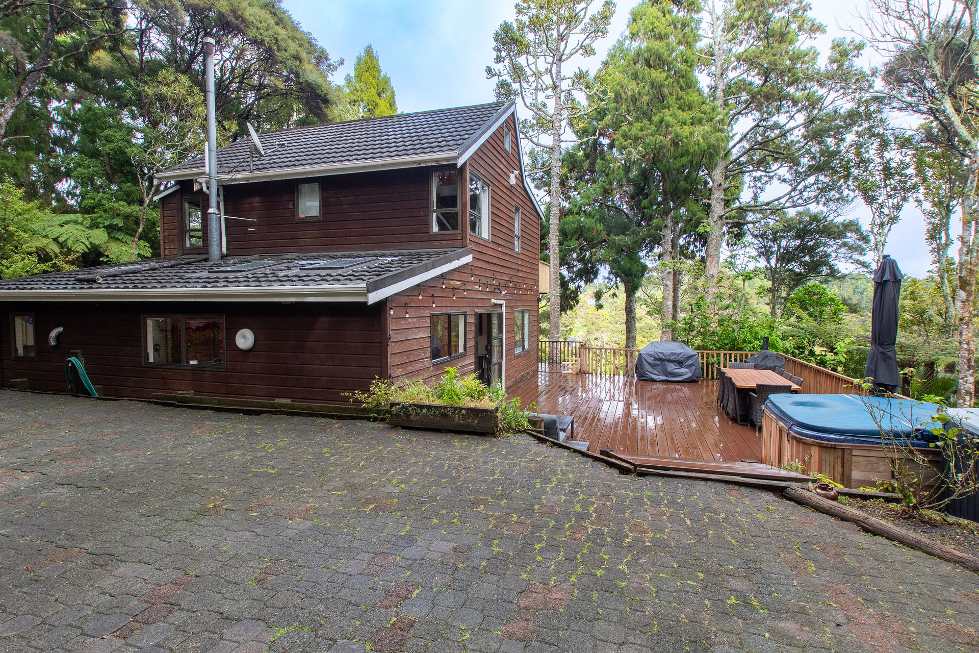 The residence's expansive deck, complemented by a fully-fenced section, invites you to enjoy the outdoors in total privacy. The deck is perfect for alfresco dining or simply soaking up the tranquil Titirangi vibe. A luxury spa pool adds a touch of indulgence to your daily routine, offering the perfect spot for relaxation. Four convenient parking spots ensure ample space for vehicles, a rare find in this sought-after location.