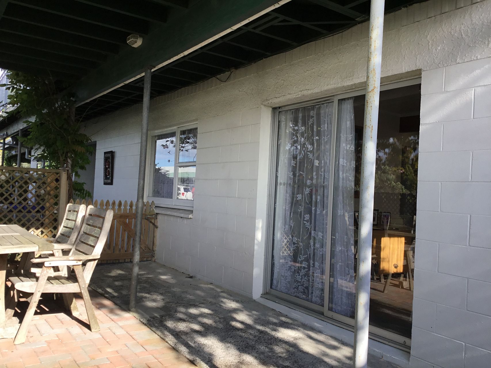 Ground floor single bedroom self contained registered unfurnished flat to rent. 4 rooms, lounge/dining, kitchen with stove, breakfast bar, bathroom/laundry with hand basin, shower, sink, washing machine and drier, and double bedroom with built in wardrobe. Off street parking for one car. Private outdoor area with table and chairs. 100 meters to bus stop. No smoking or pets. Landlords live upstairs. Suitable for a single mature person. Rent includes water and rubbish collection. Current tenant has been here for 9 years.