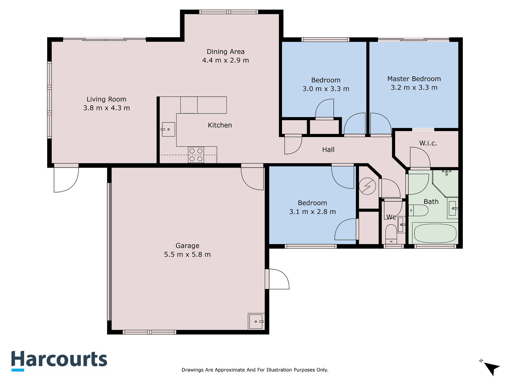 • Three double bedrooms, all with built in wardrobes (master with walk in wardrobe).