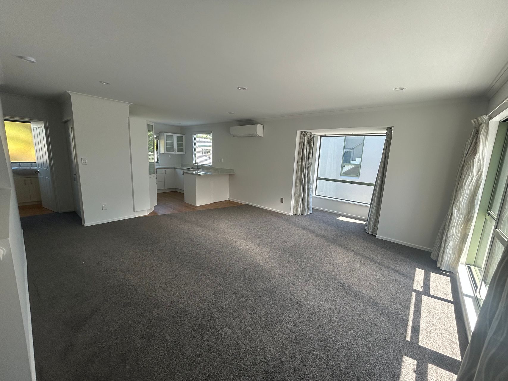 - Bright, spacious open-plan kitchen, dining, and living area flowing out to a sunny balcony