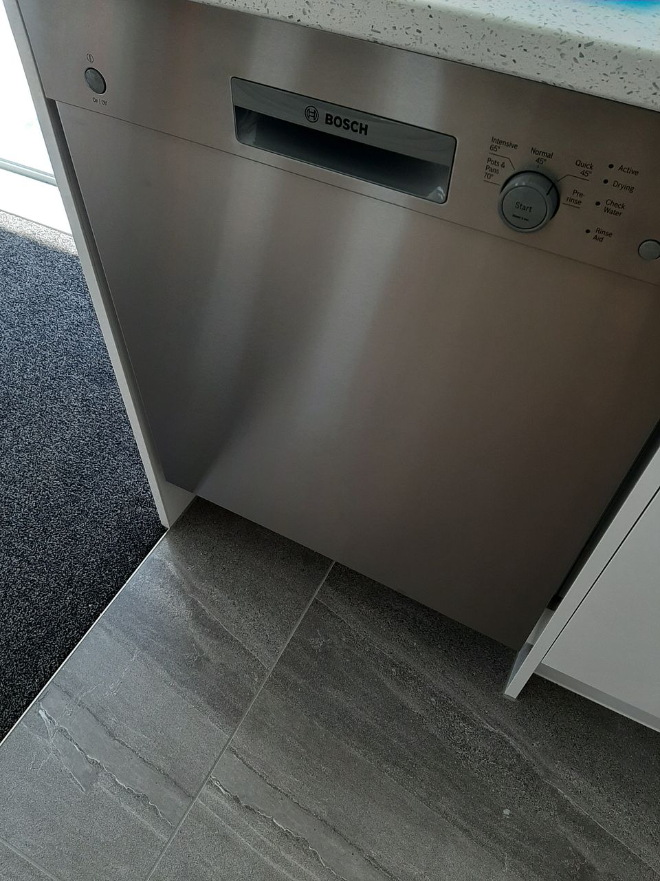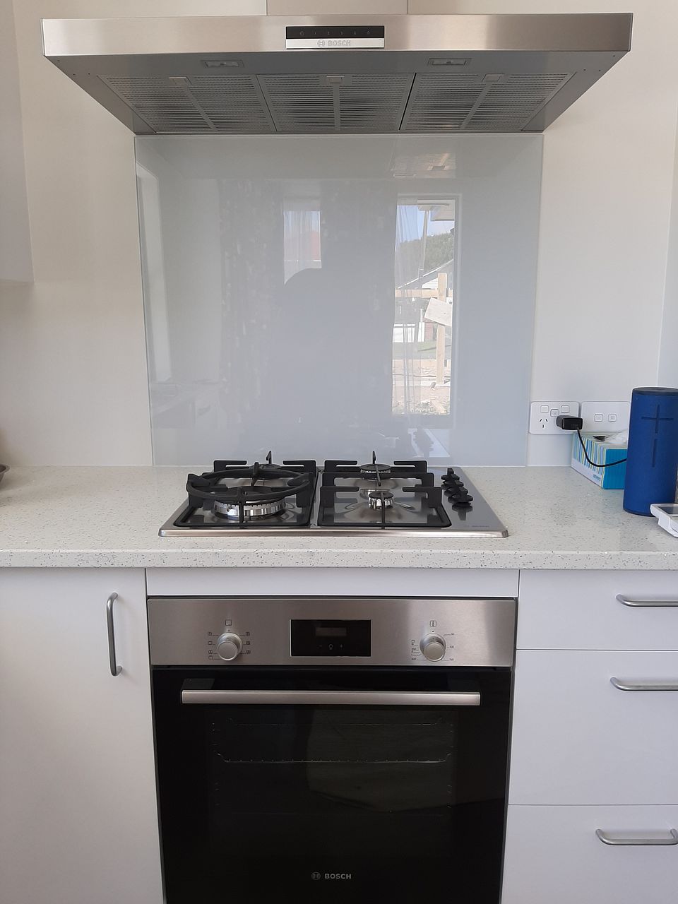 · Modern Kitchen with Marble Benchtops, Bosch Gas Stove, Bosch Dishwasher and Bosch Oven