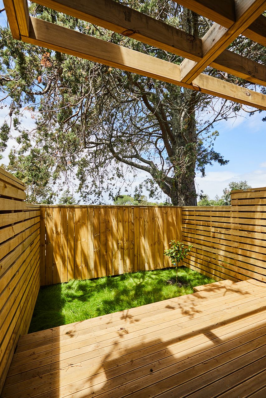 Private back yard and deck fenced