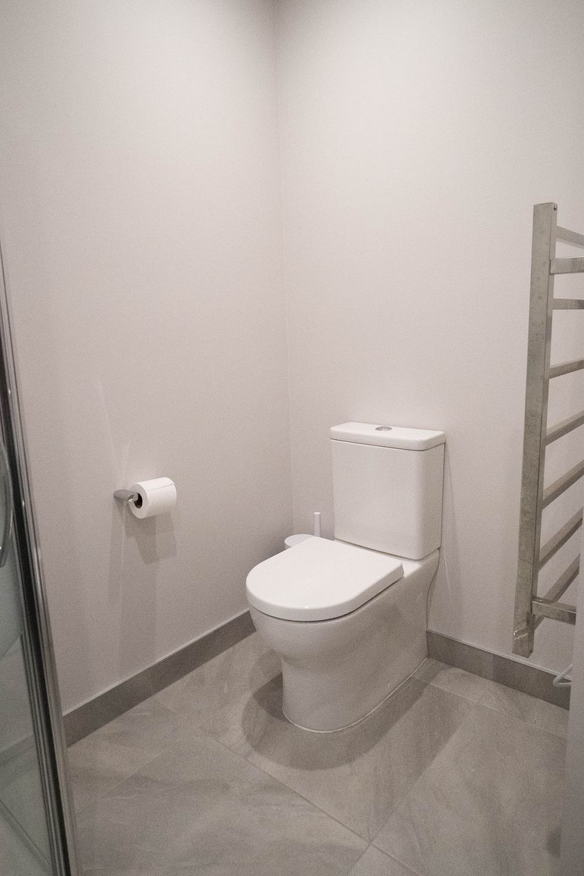 In between both rooms is a good-sized bathroom with a large shower, vanity and toilet.
