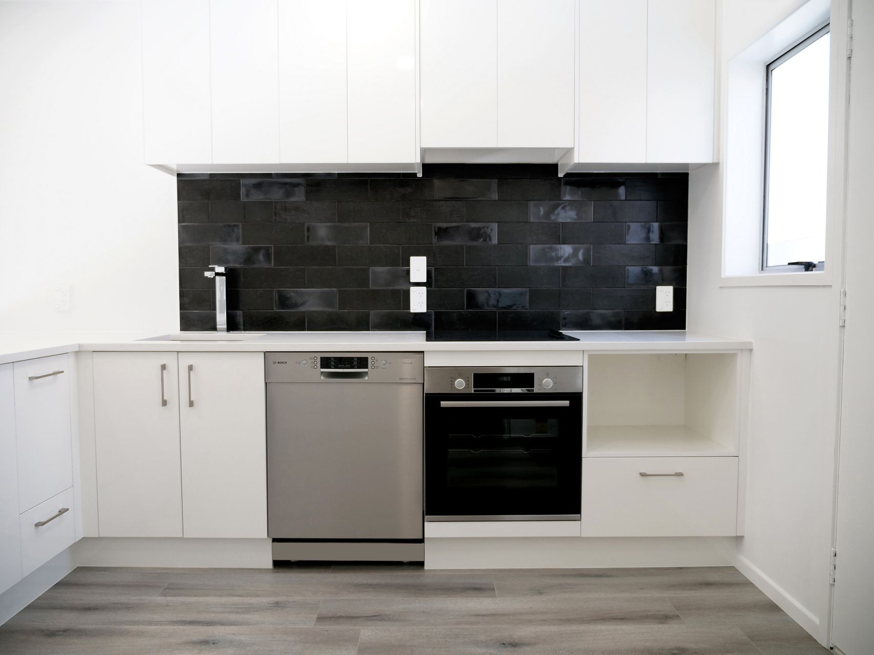 - Modern kitchen with a stone benchtop, subway tiles and a breakfast bar - perfect for entertaining.