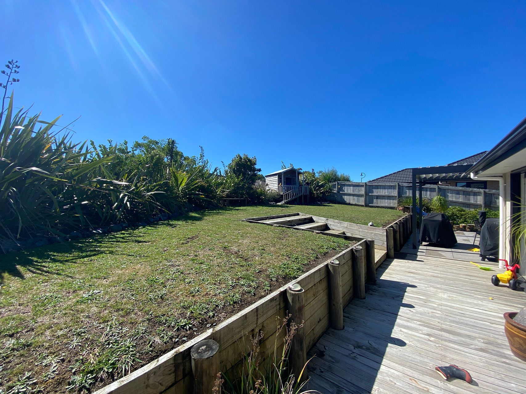 - Outdoor area has Louvre roof and stone pit and a play house for kids
