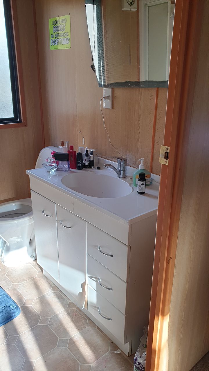 House has a laundry cupboard with a tub, and taps for a washing machine.