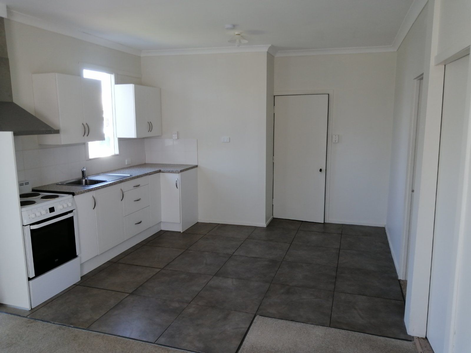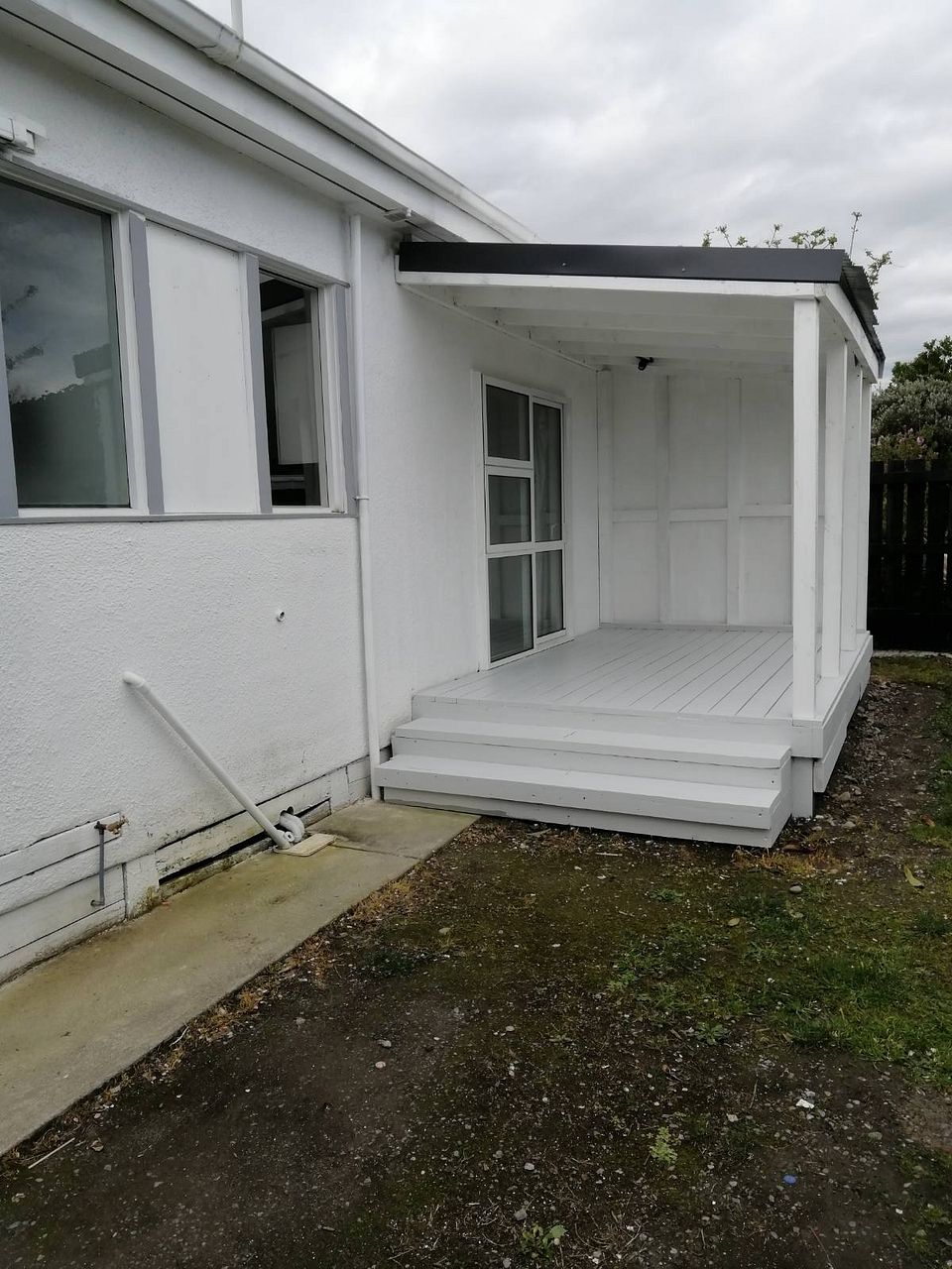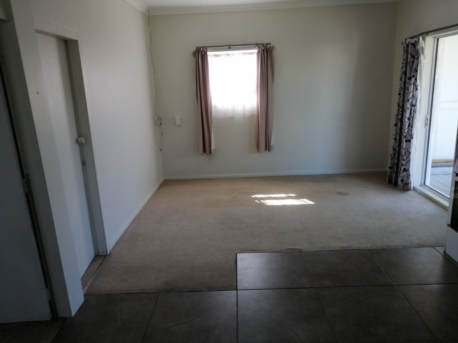 Open plan lounge and kitchen along with a double glazed ranch slider that leads onto a covered deck.