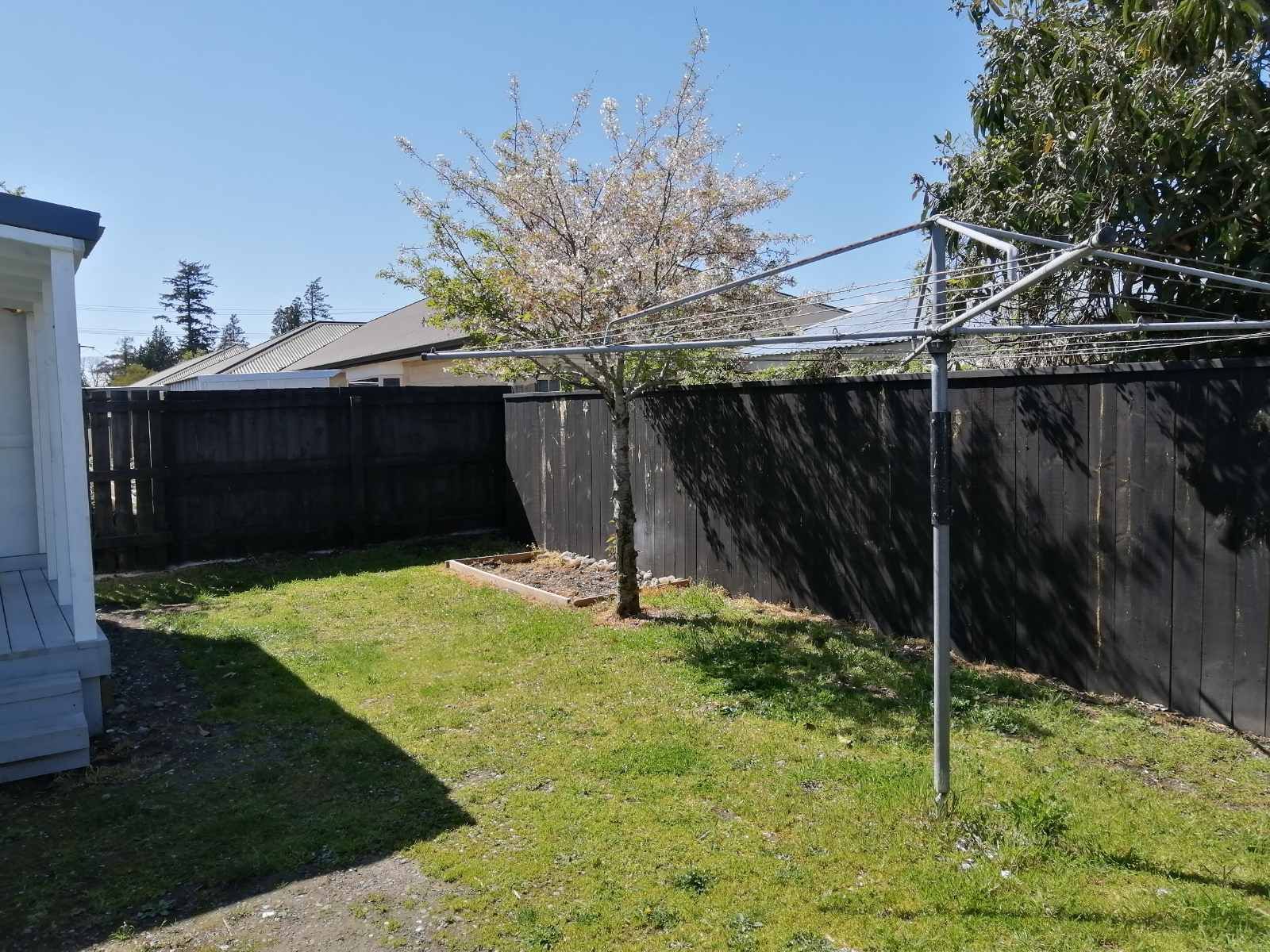 Small yard with rotary washing line.