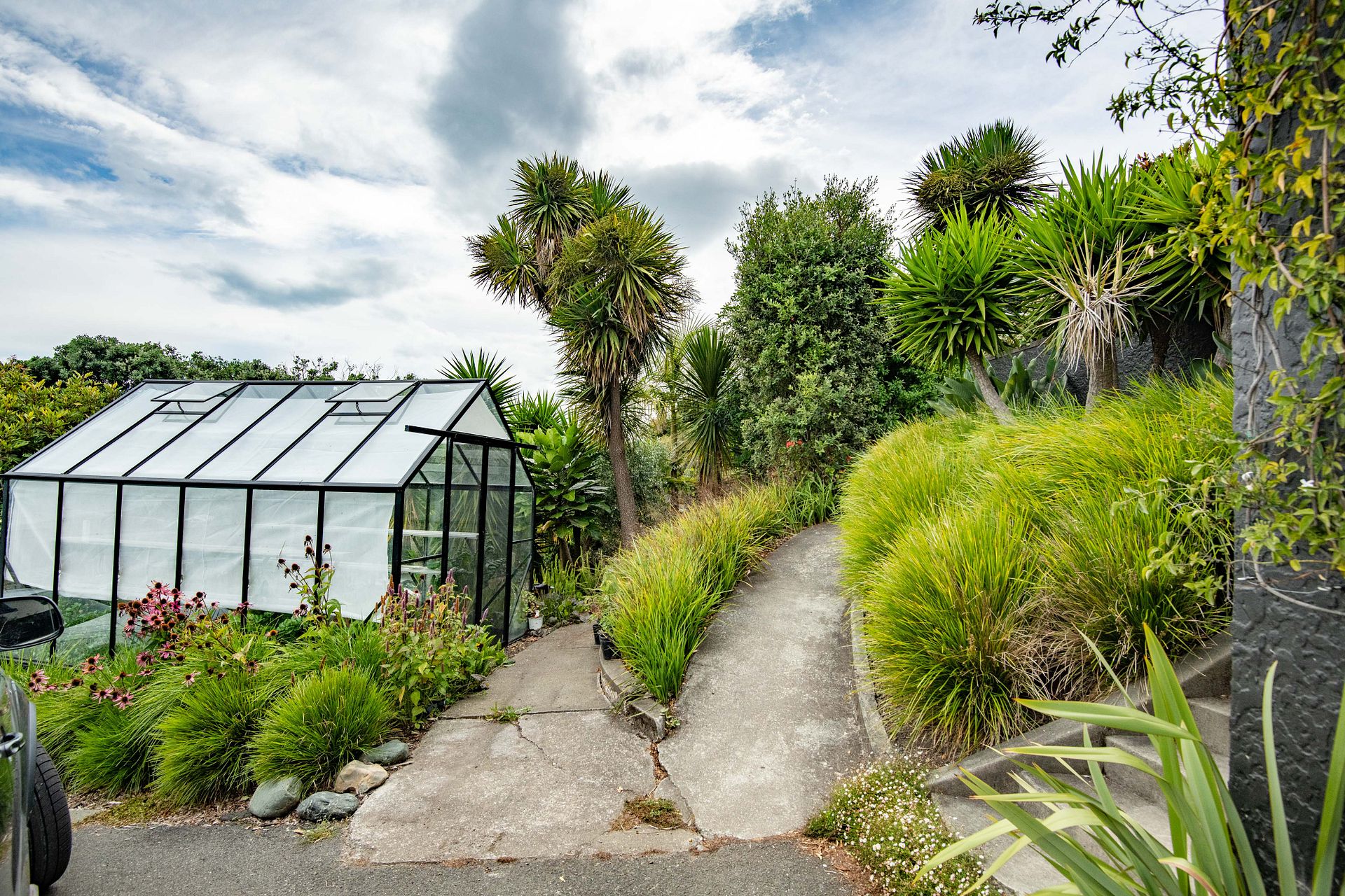 A large basement houses two vehicles, with forecourt parking for visitors. For gardeners, the glass house and raised vege beds will be attractive.