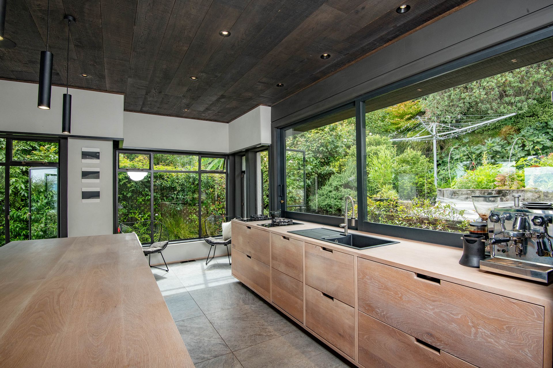 Privately set in pleasant garden surrounds, the house, modernised with exceptional flair by the builder owner, has three bedrooms (one with double-shower ensuite) and a second bathroom, each beautifully tiled.