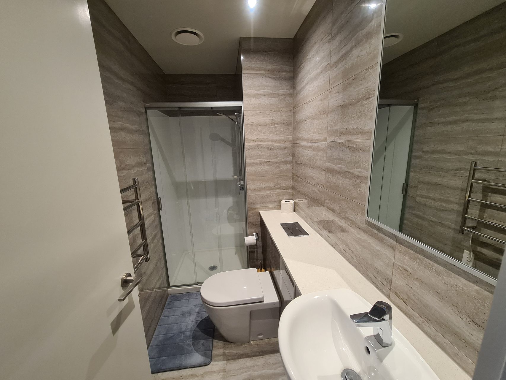 Fridge-freezer, microwave, oven, dishwasher, toaster, kettle, 1 Sony television, washing machine/dryer, 2 heat pump/air condition units, 1x queen bed, 1x double bed and 1x king single bed. Also has plenty of storage and shelving, including desks and chairs (for working from home), entertainment unit, shoe-cabinet, bookshelf, bedside tables etc.