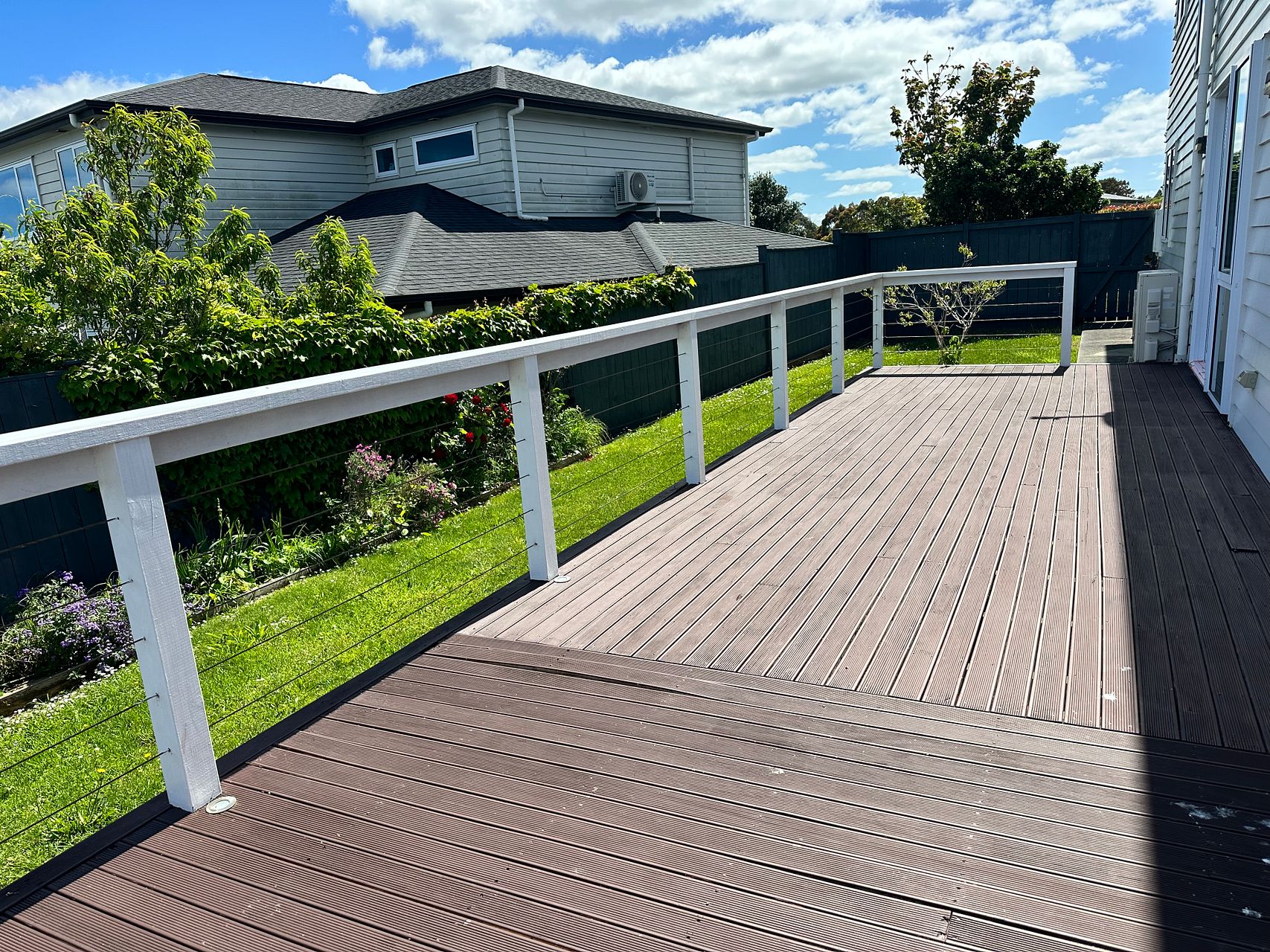 • Beautiful front and back garden(fully fenced) with an ample deck area with a pergola and deck lights that's perfect for entertaining or relaxation. The wraparound deck adds an extra outdoor space for family activities.