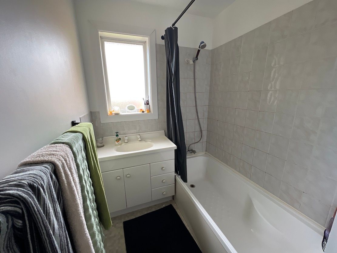 Bathroom has shower over bath, the toilet is separate.