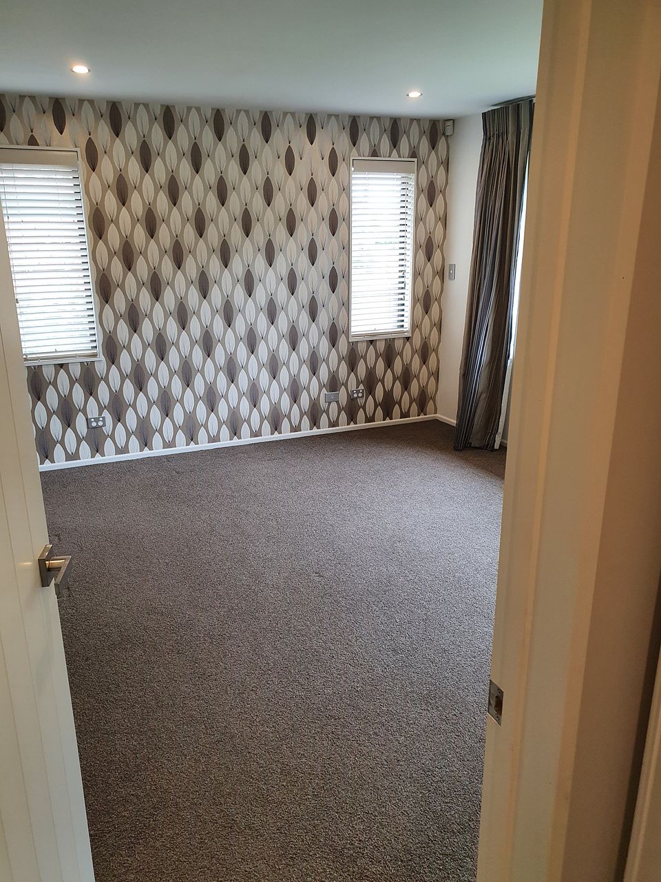 Pleasant outlook over green space and quiet street, close to shops and bus stop.