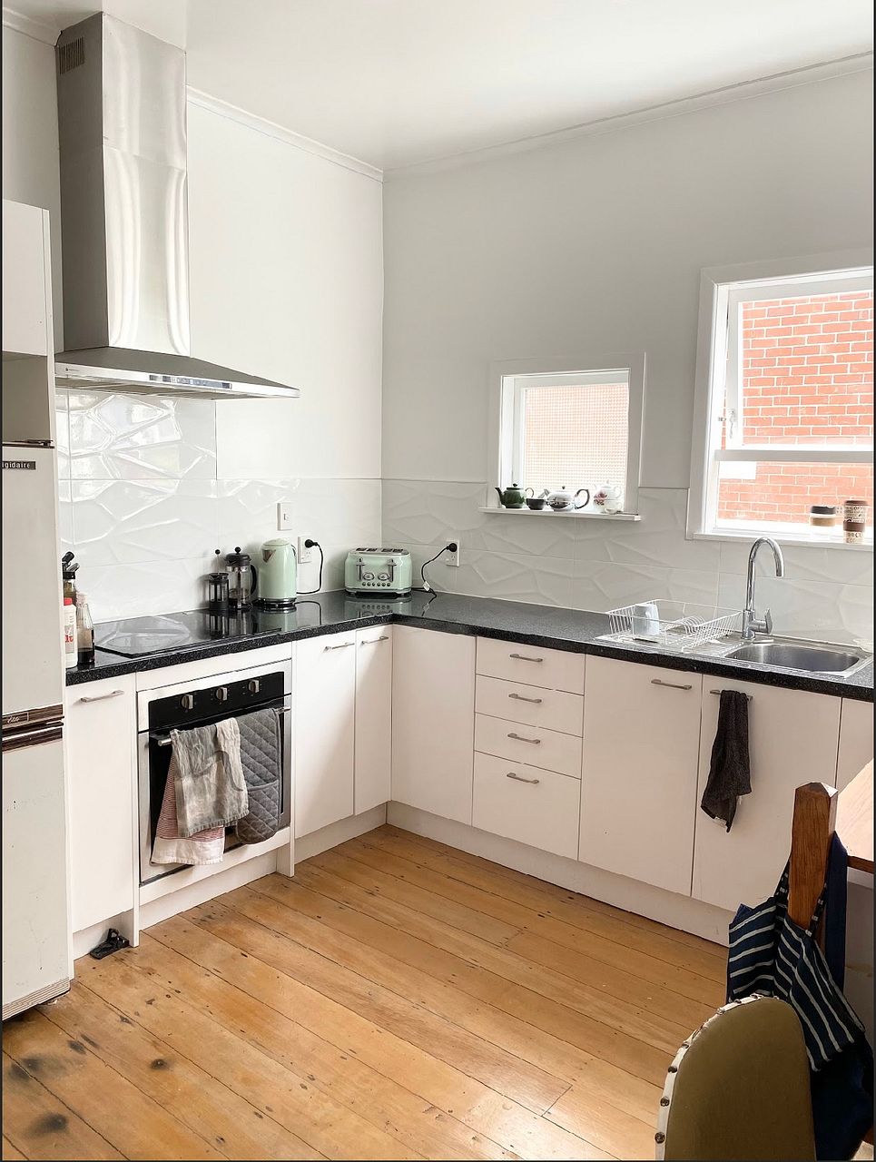 New designer kitchen with newly polished kauri floors.