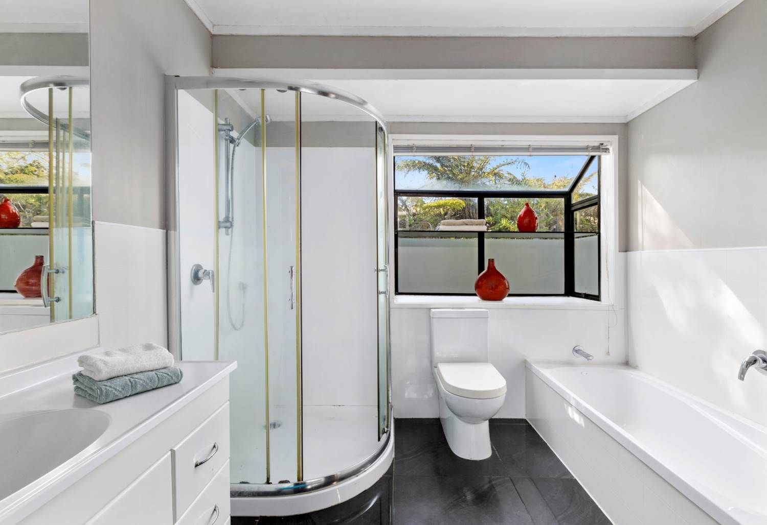 Located in a quiet street with convenient access to Glenfield, Sunset and Wairau Roads. Bus stops are within short walking distance for routes to the city centre and North Shore suburbs.