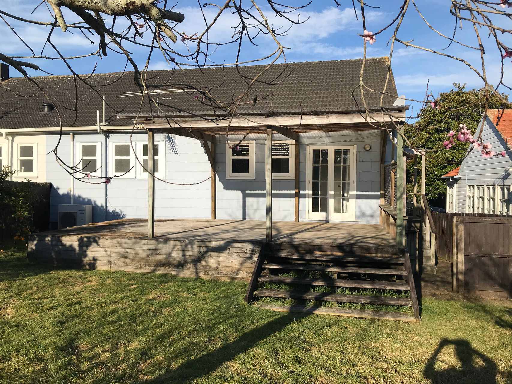 * big garden with fruit trees: feijoa, orange, peach and lemon