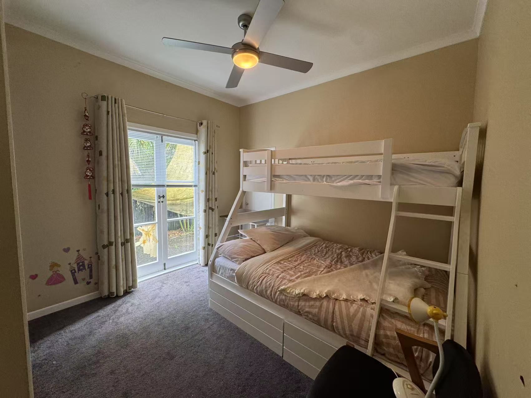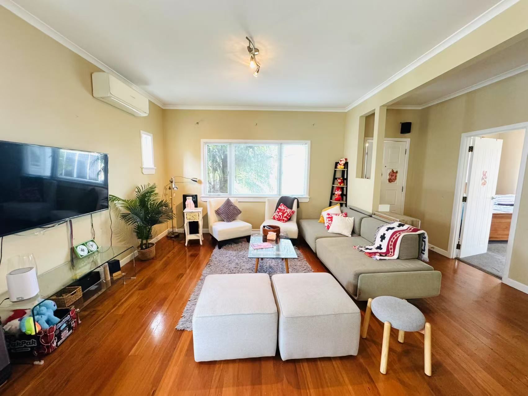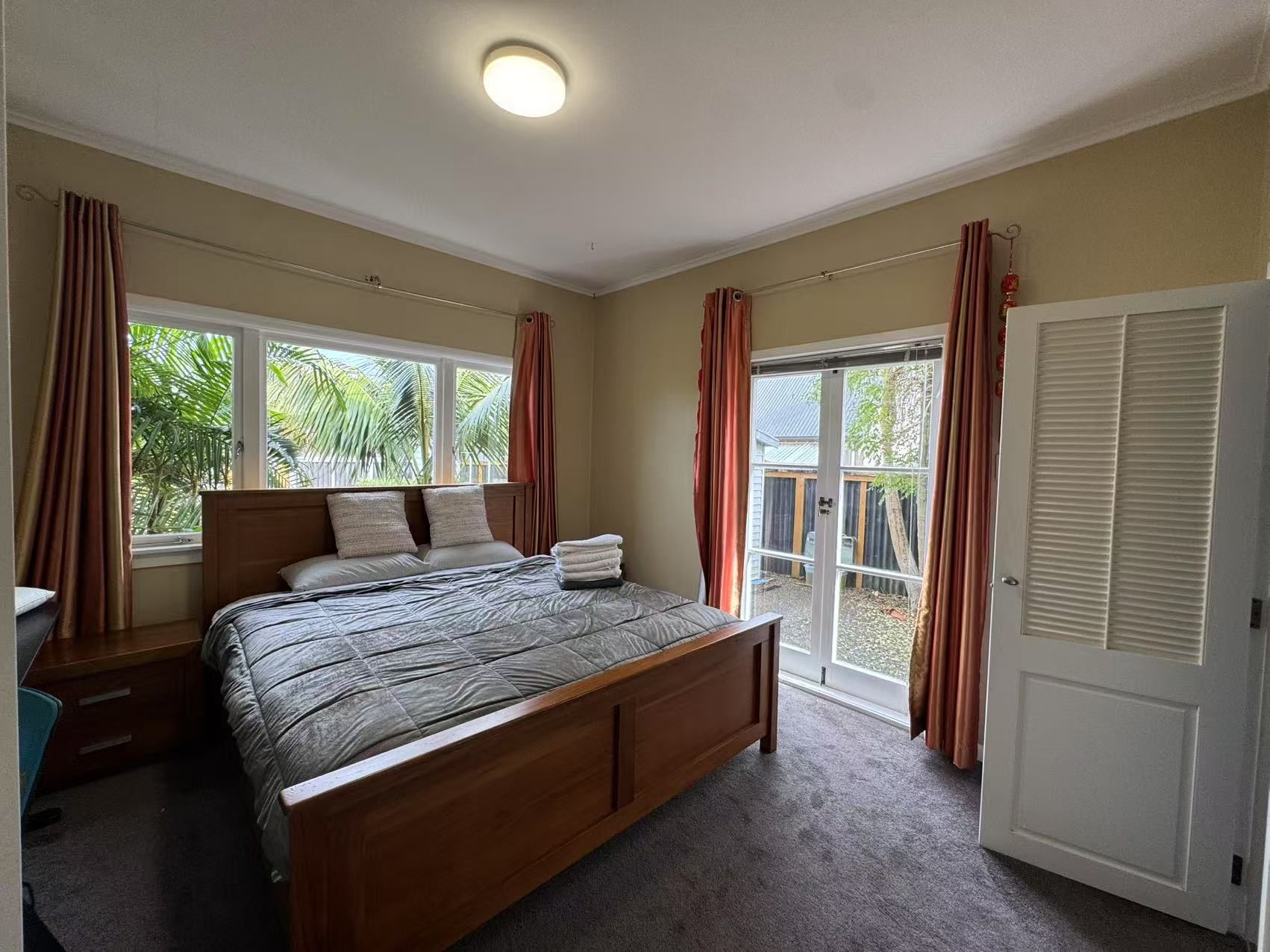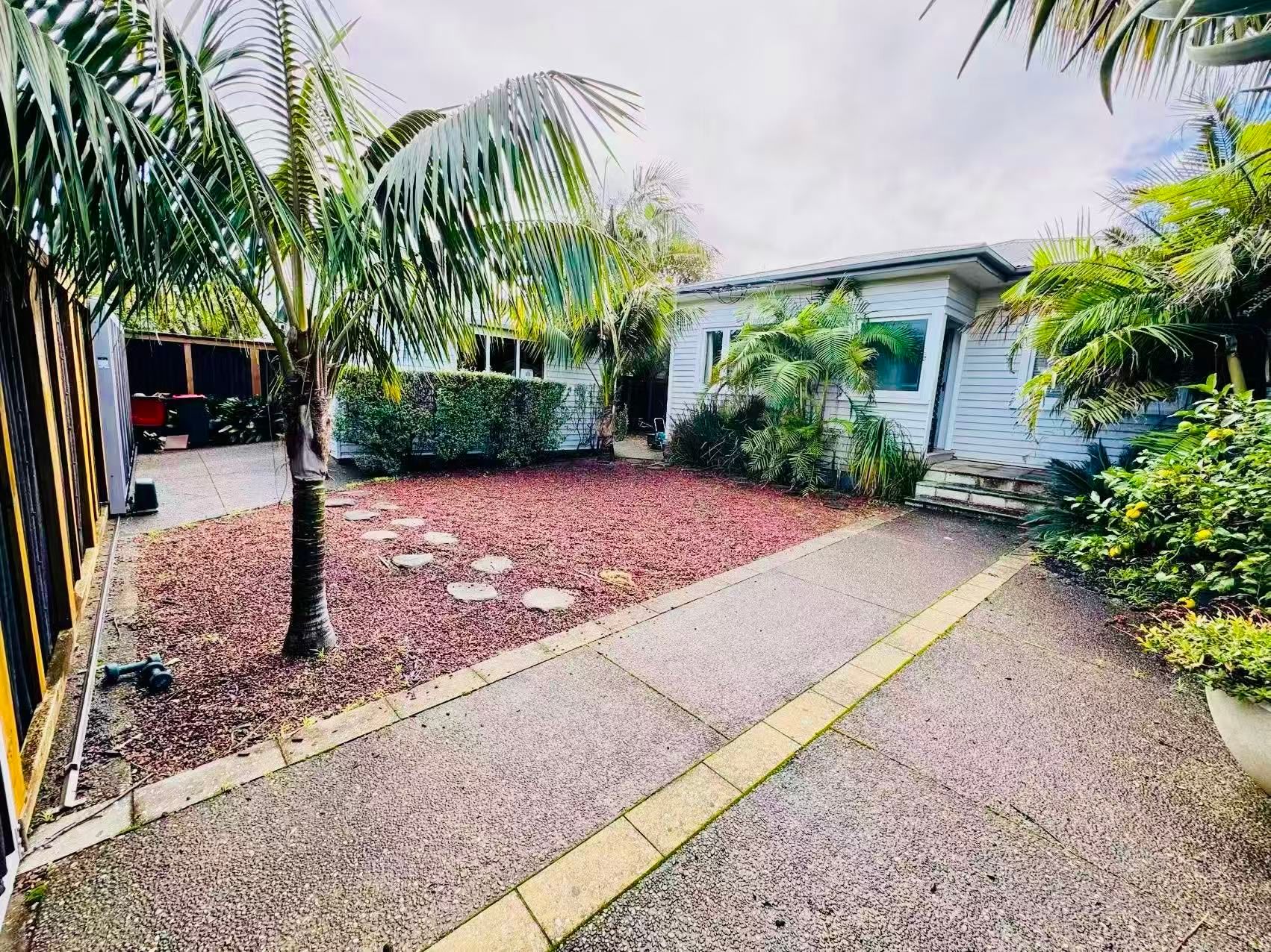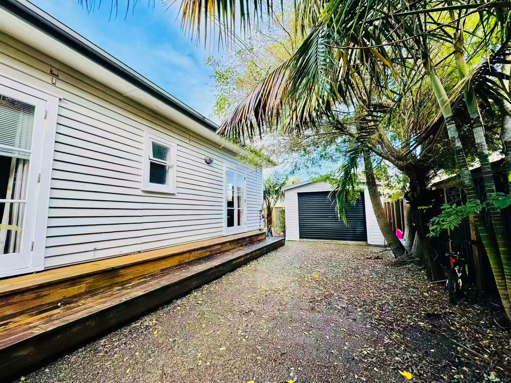 Fully Finished Charming 3-bed, 2-bath bungalow in Mission Bay, Auckland. One-minute walk to Tamaki Drive and Mission Bay Beach. Features a main bedroom with walk-in wardrobe and ensuite, plus two other bedrooms with a bunk bed and double bed. Fully fenced with a lush garden, single garage, and rapid car charging. Includes a cozy living area, spacious kitchen, and outdoor seating.