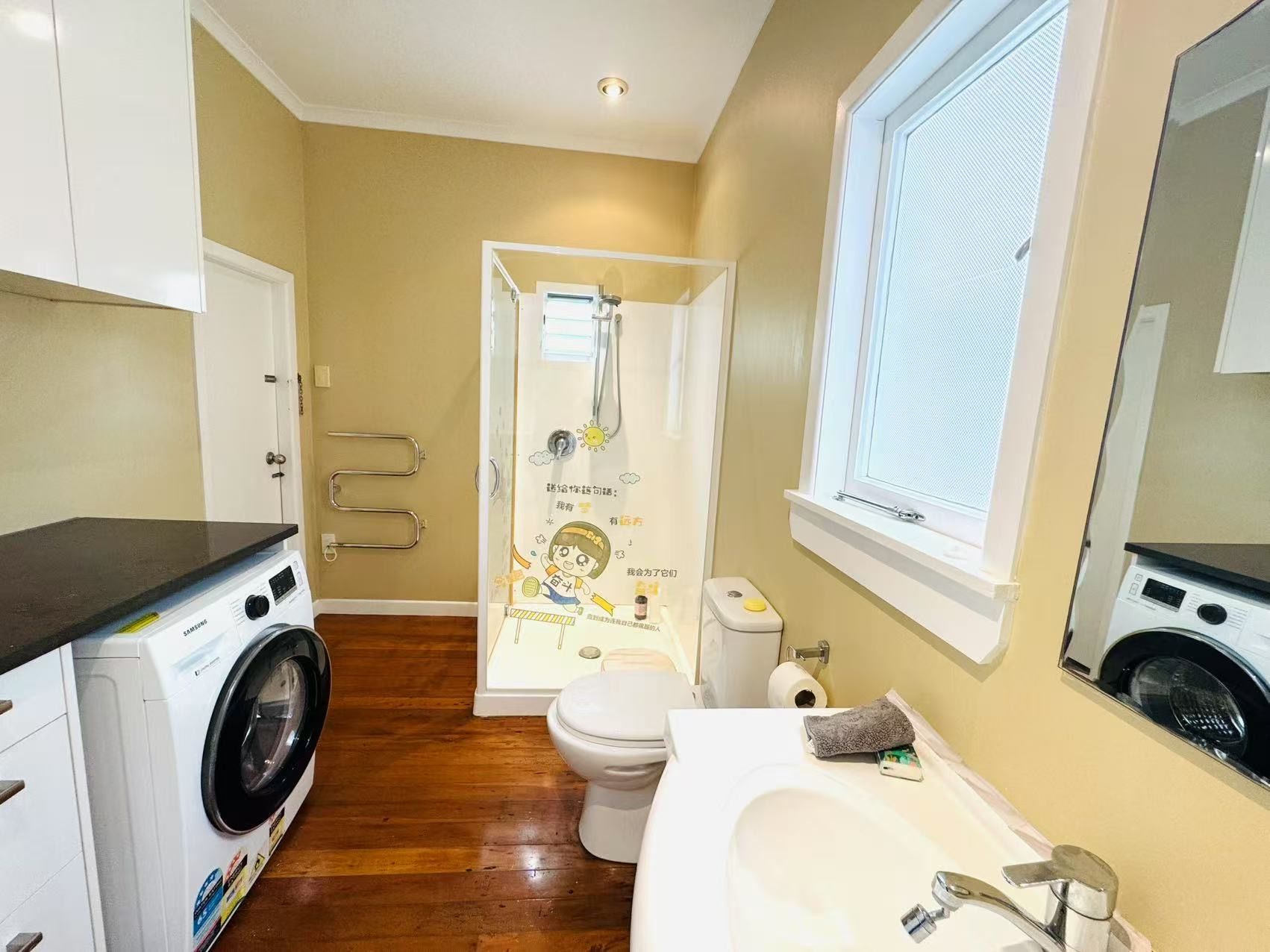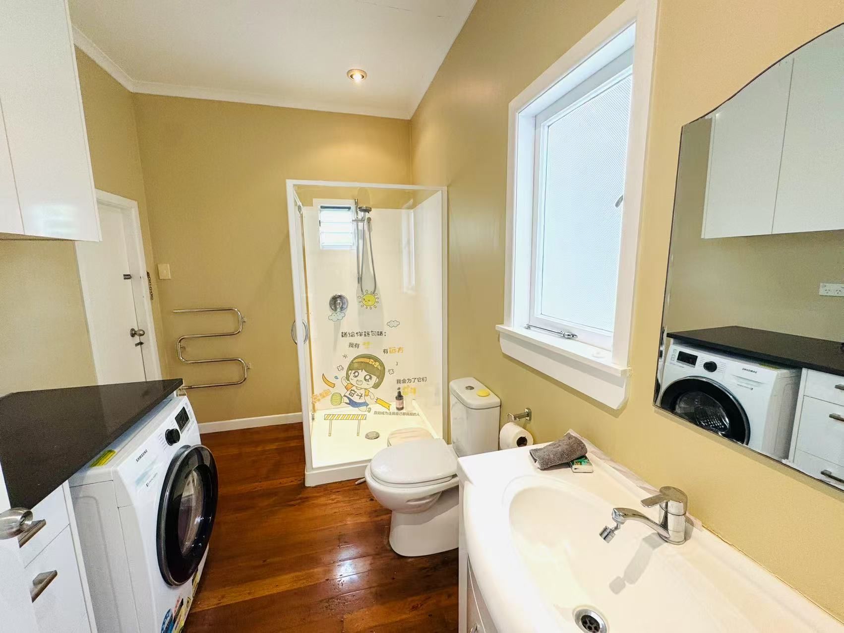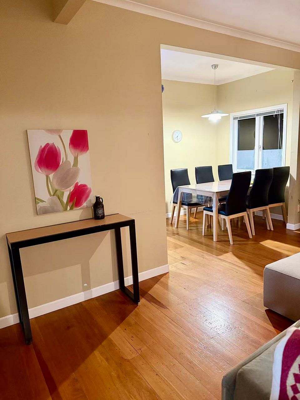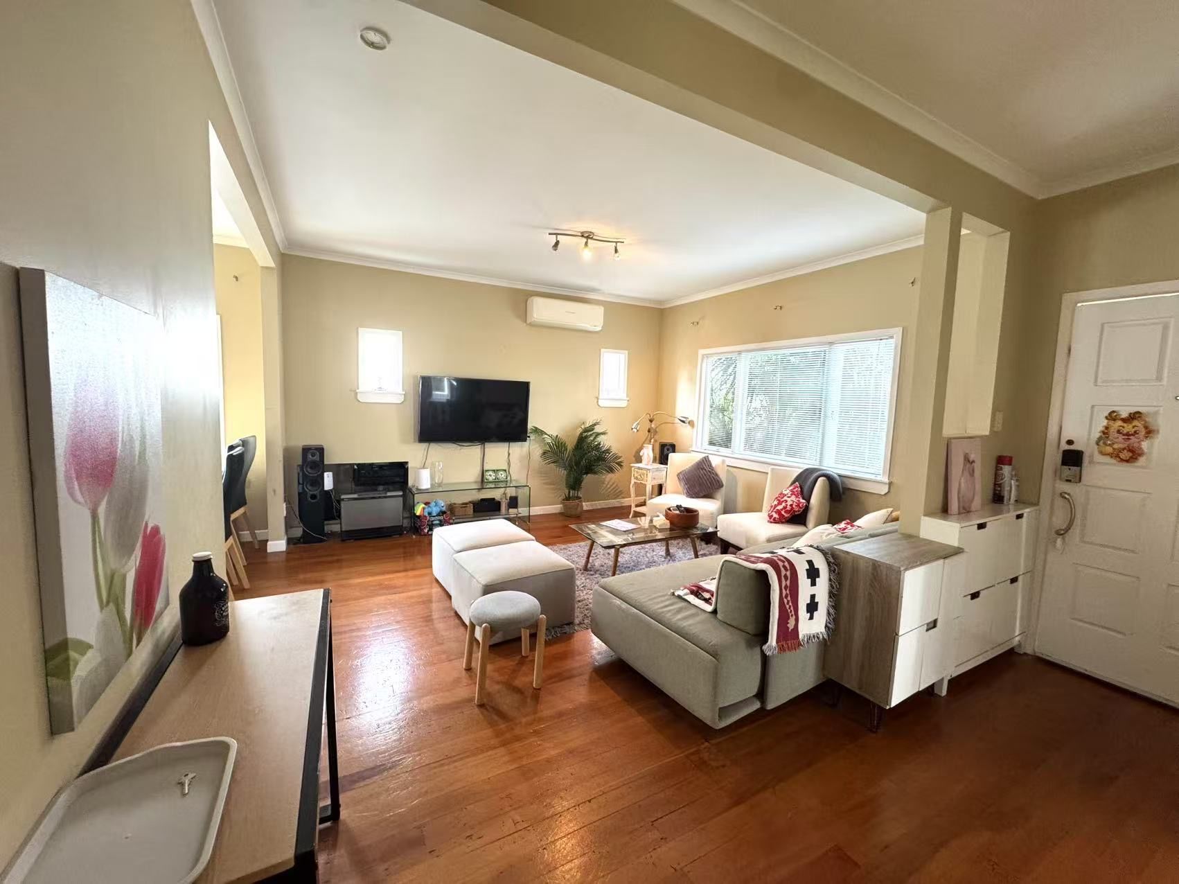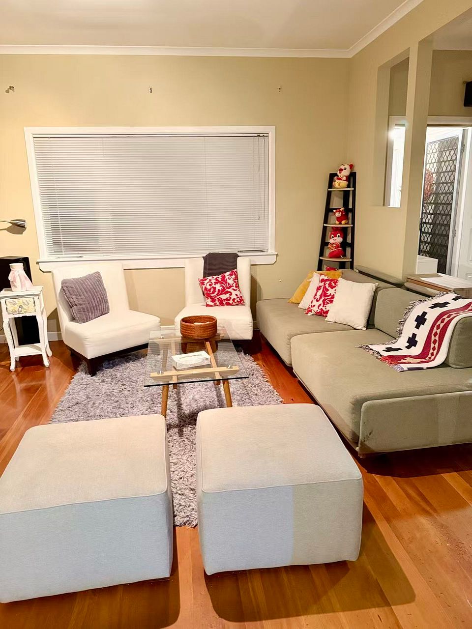 Fully Finished Charming 3-bed, 2-bath bungalow in Mission Bay, Auckland. One-minute walk to Tamaki Drive and Mission Bay Beach. Features a main bedroom with walk-in wardrobe and ensuite, plus two other bedrooms with a bunk bed and double bed. Fully fenced with a lush garden, single garage, and rapid car charging. Includes a cozy living area, spacious kitchen, and outdoor seating.