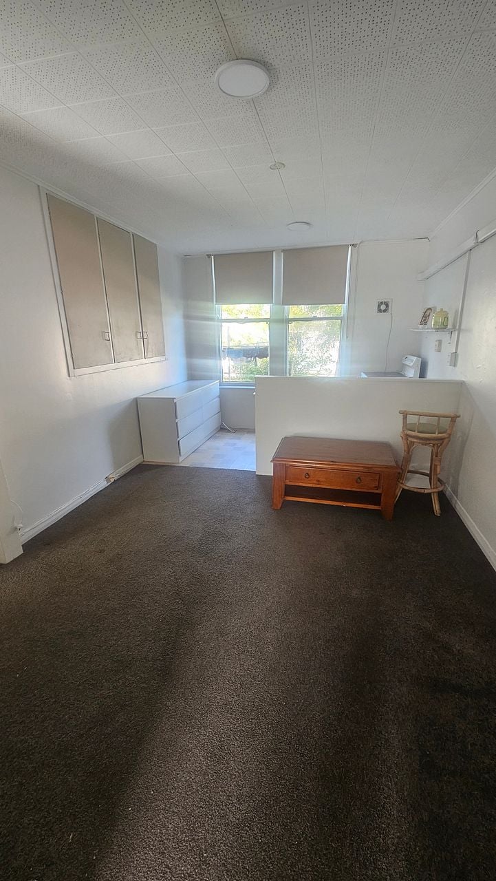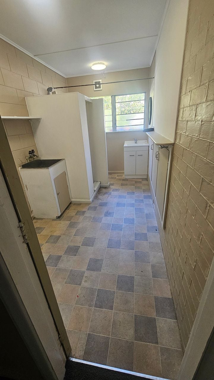 Tidy one bedroom flat in Rolleston St ( between Ranfurly and Ada St), very central, on the Massey side of town, just a couple of minutes walk to the Plaza, Supermarkets