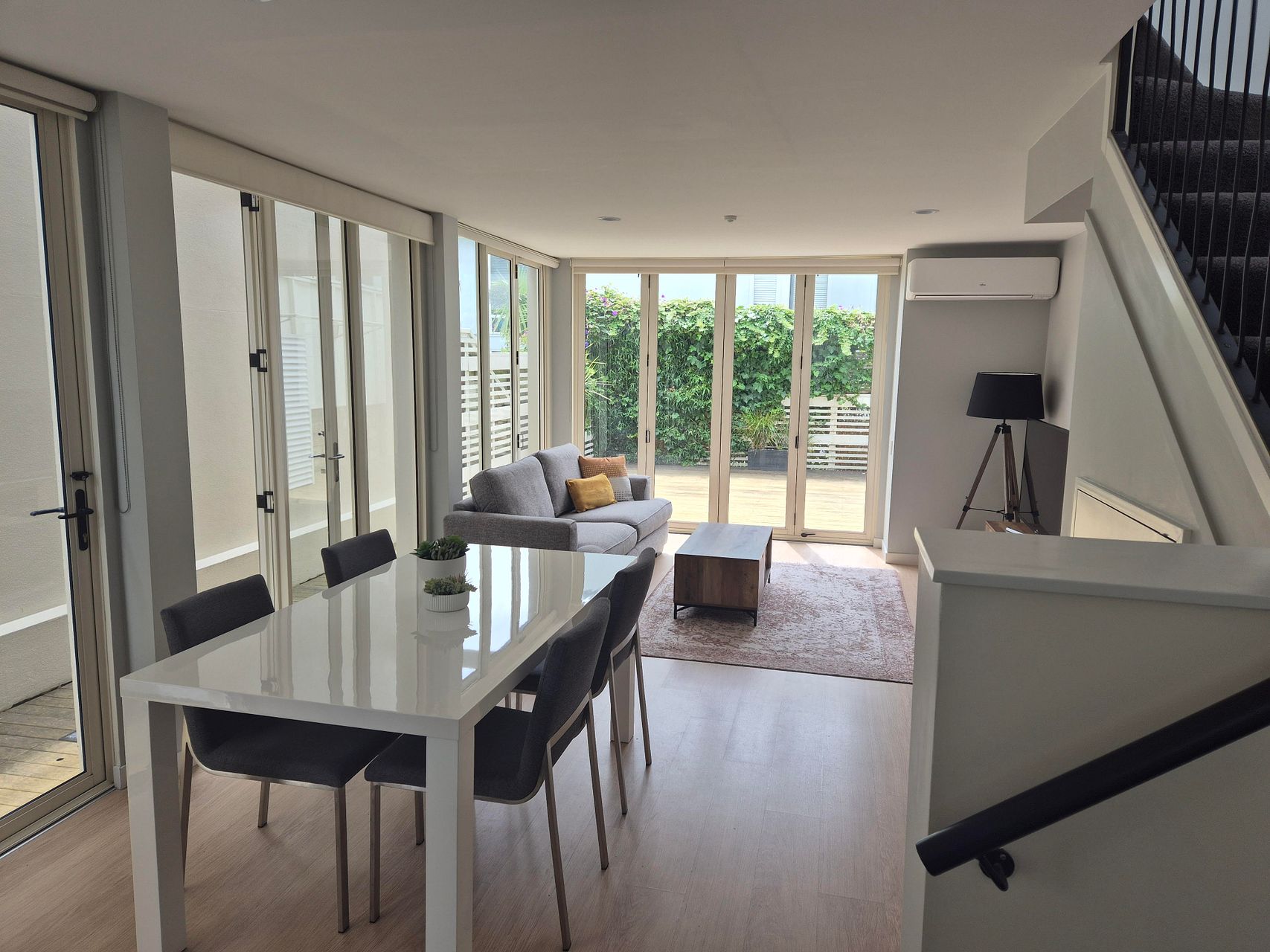 Smart tv, two heat pumps, dining set, lounge and other furniture.