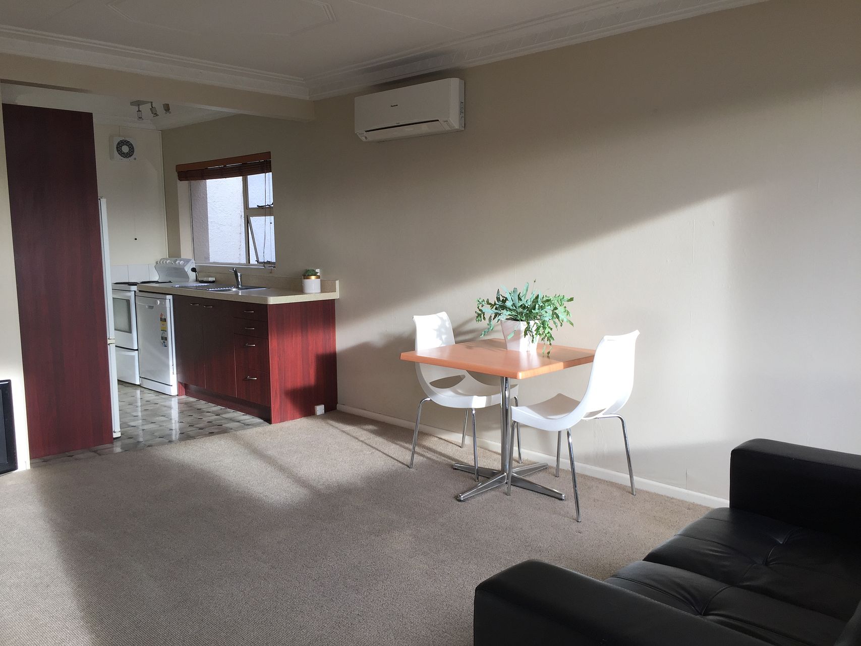 Currently furnished with kitchen white-ware, washing machine, 2 seater, tv and dining table + 2 chairs. Heat-pump.