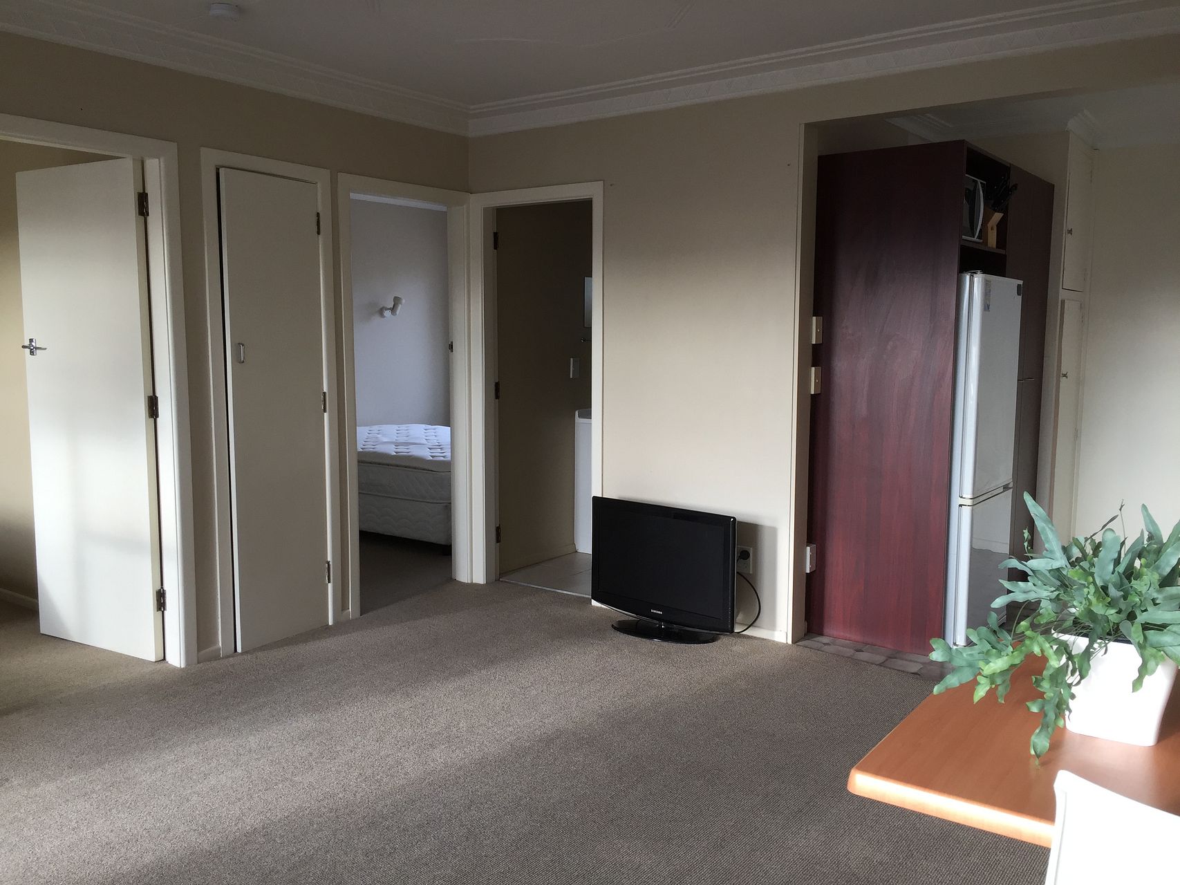 A two bedroom apartment with open plan kitchen/dining/living area. Two queen size bedrooms with built in wardrobes. Separate bathroom with a shower and washing machine.