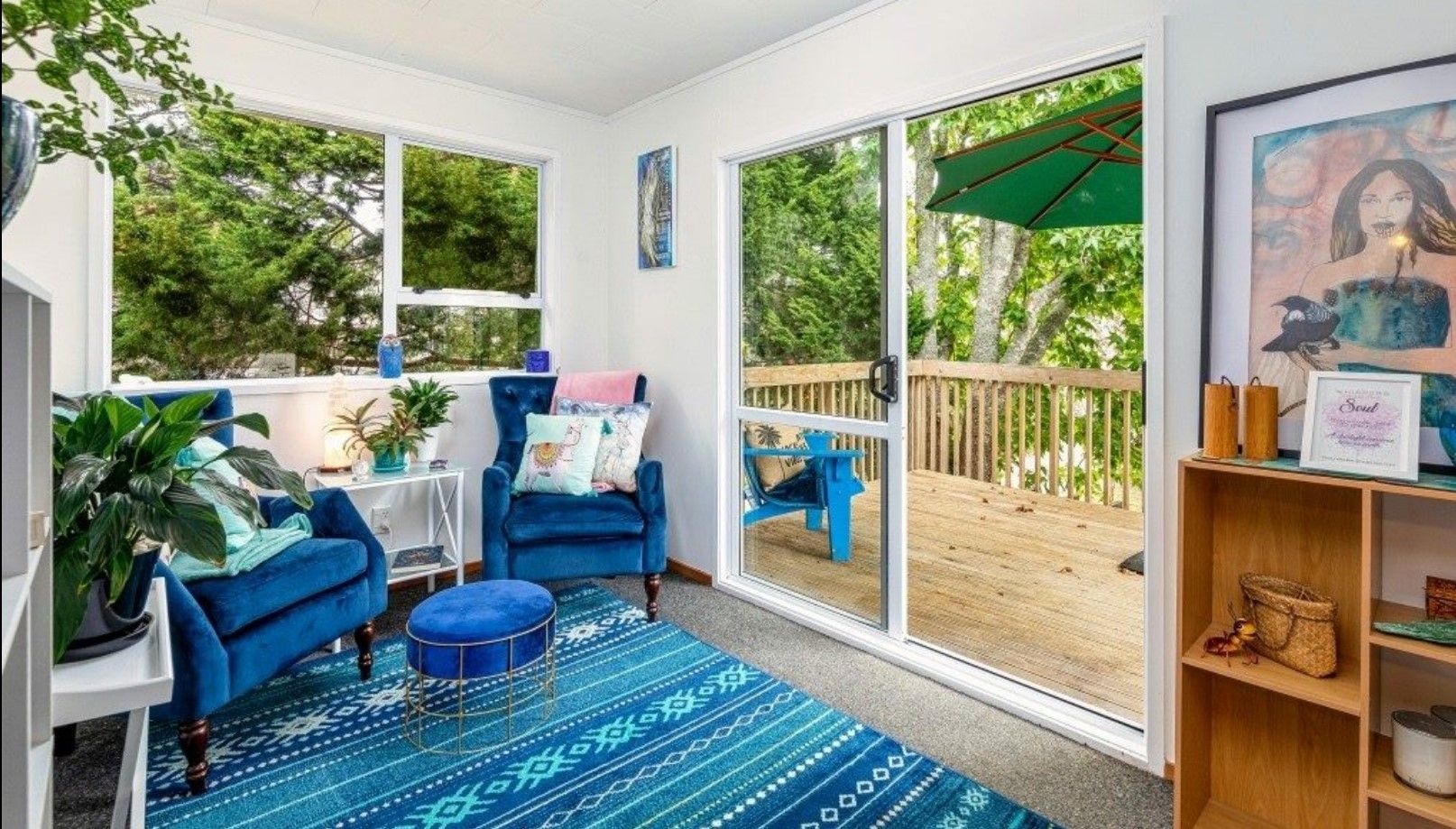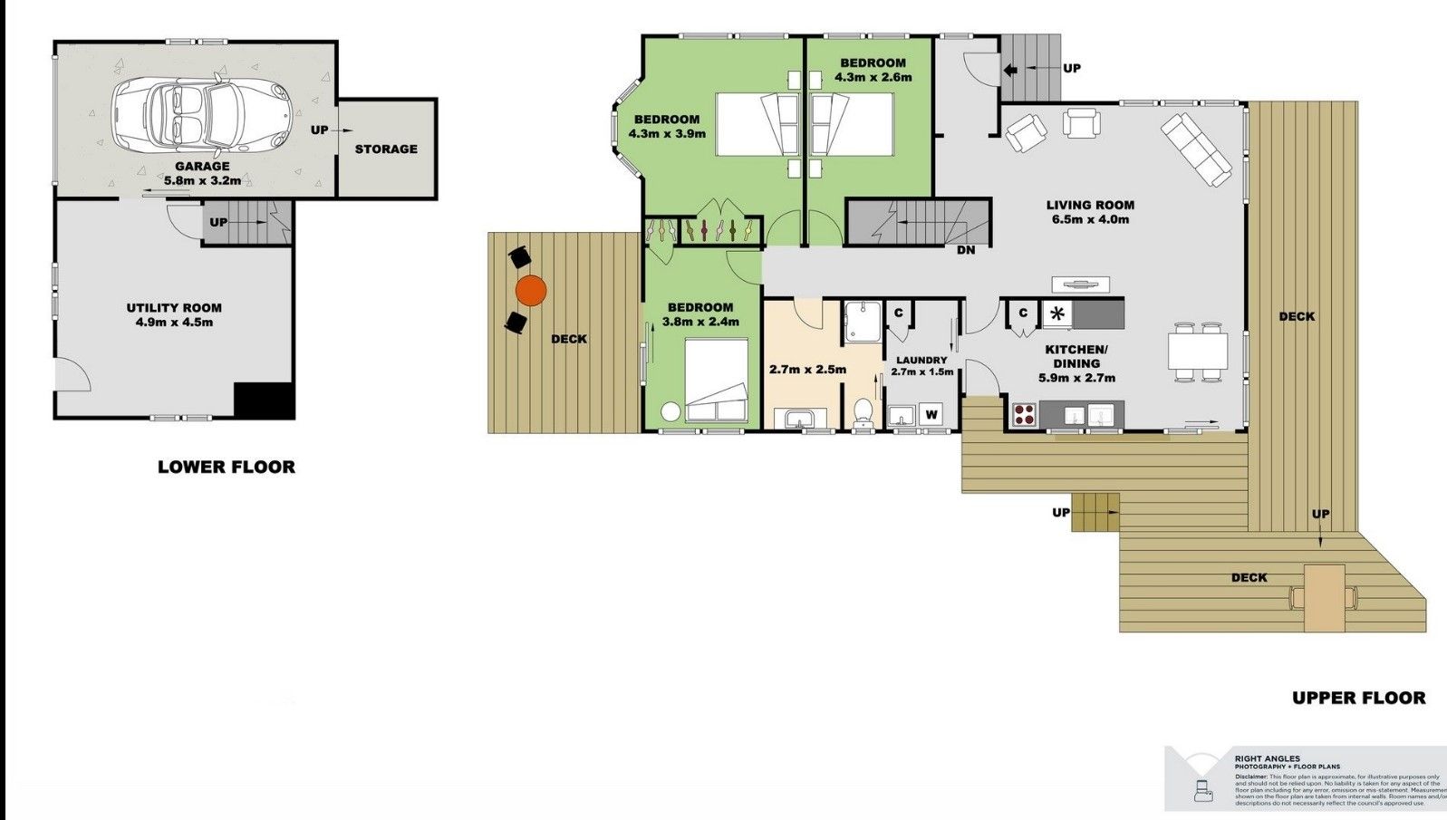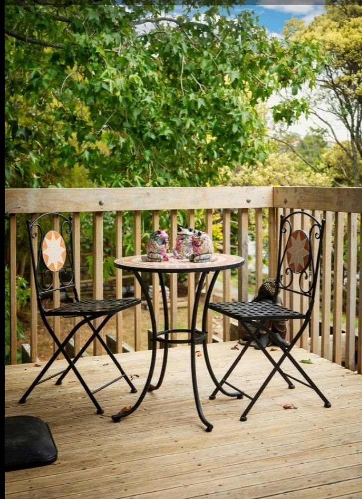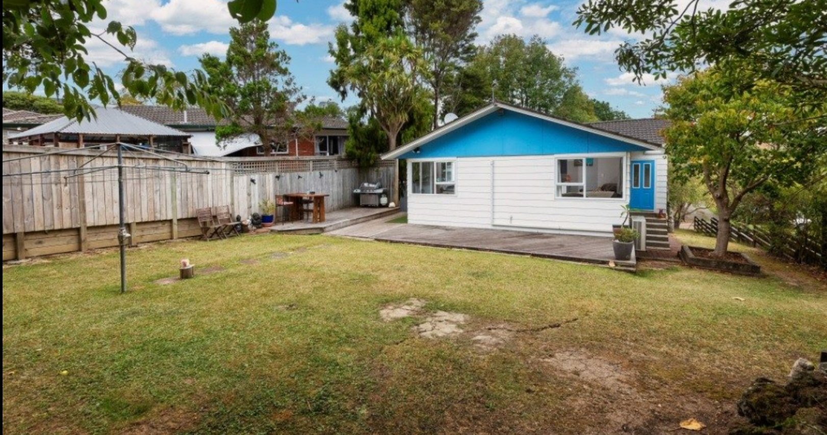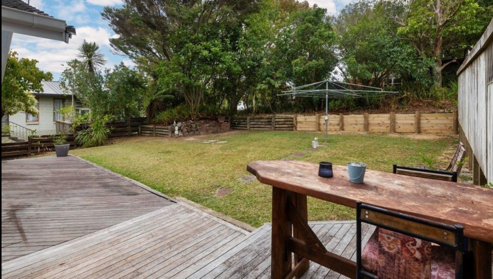Large flat garden with a wonderful deck and outdoor living area.