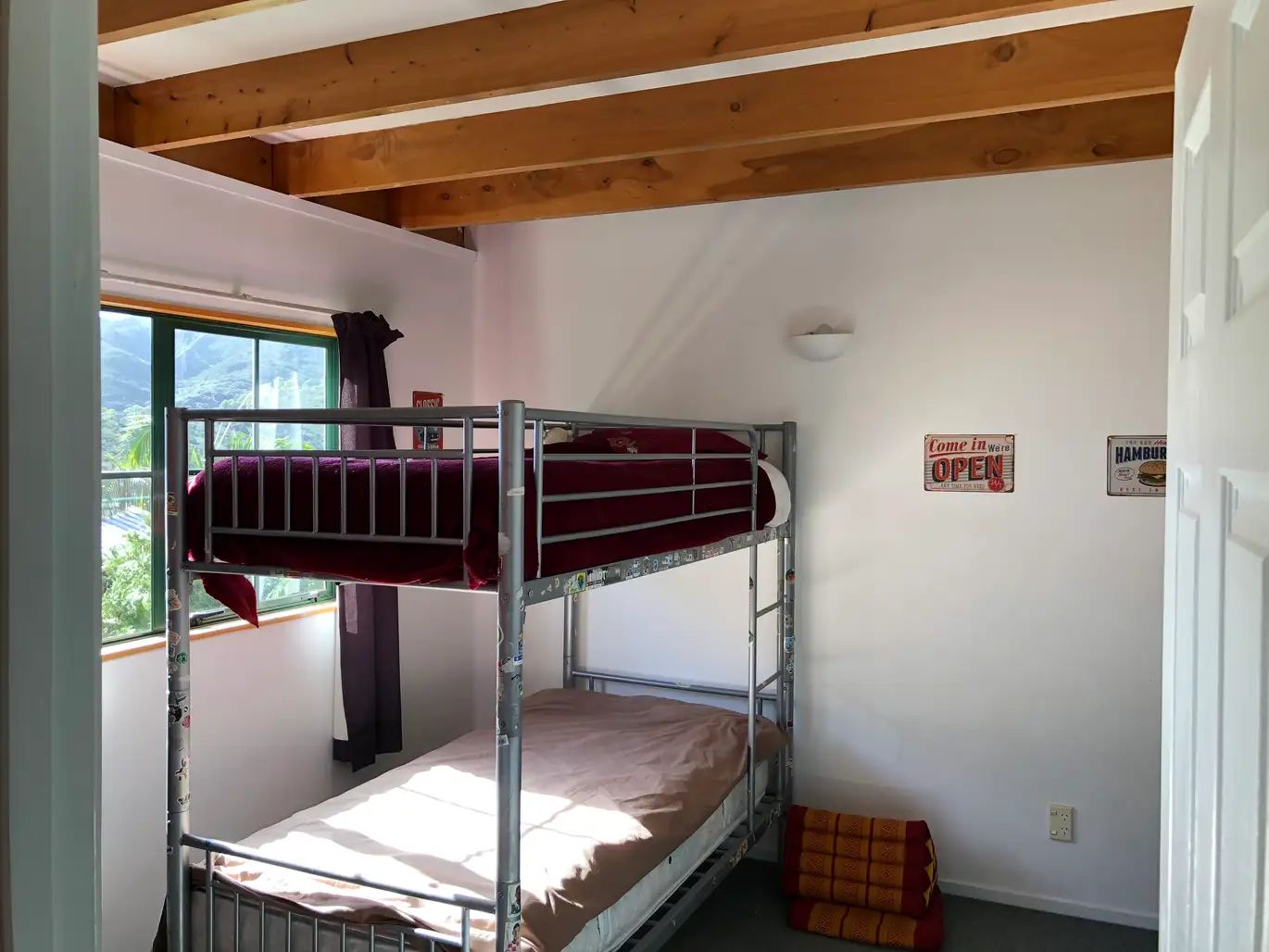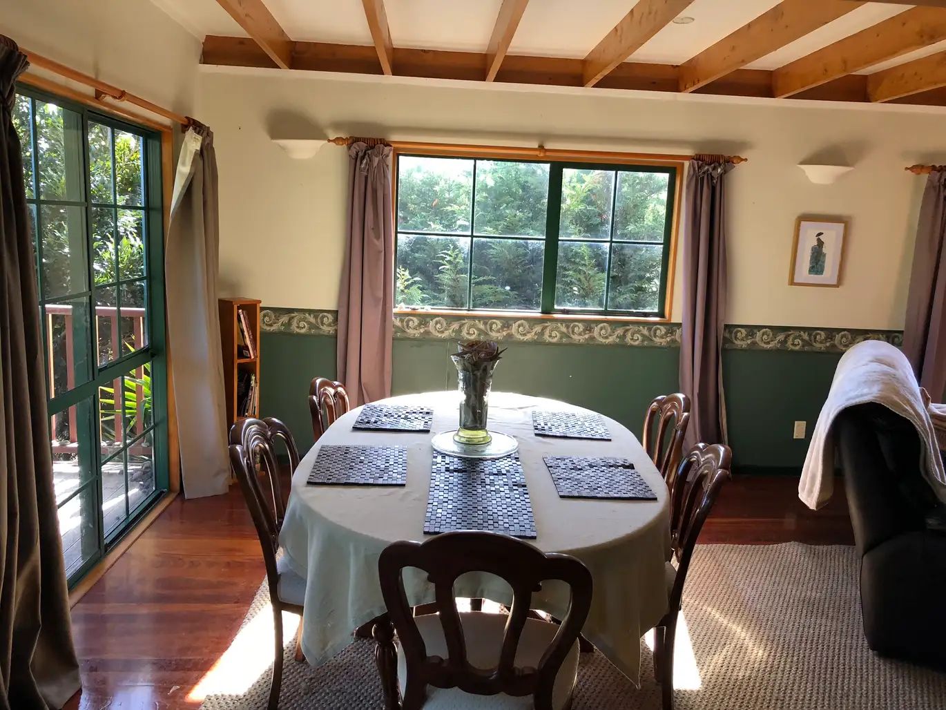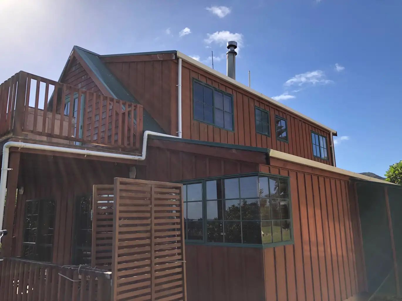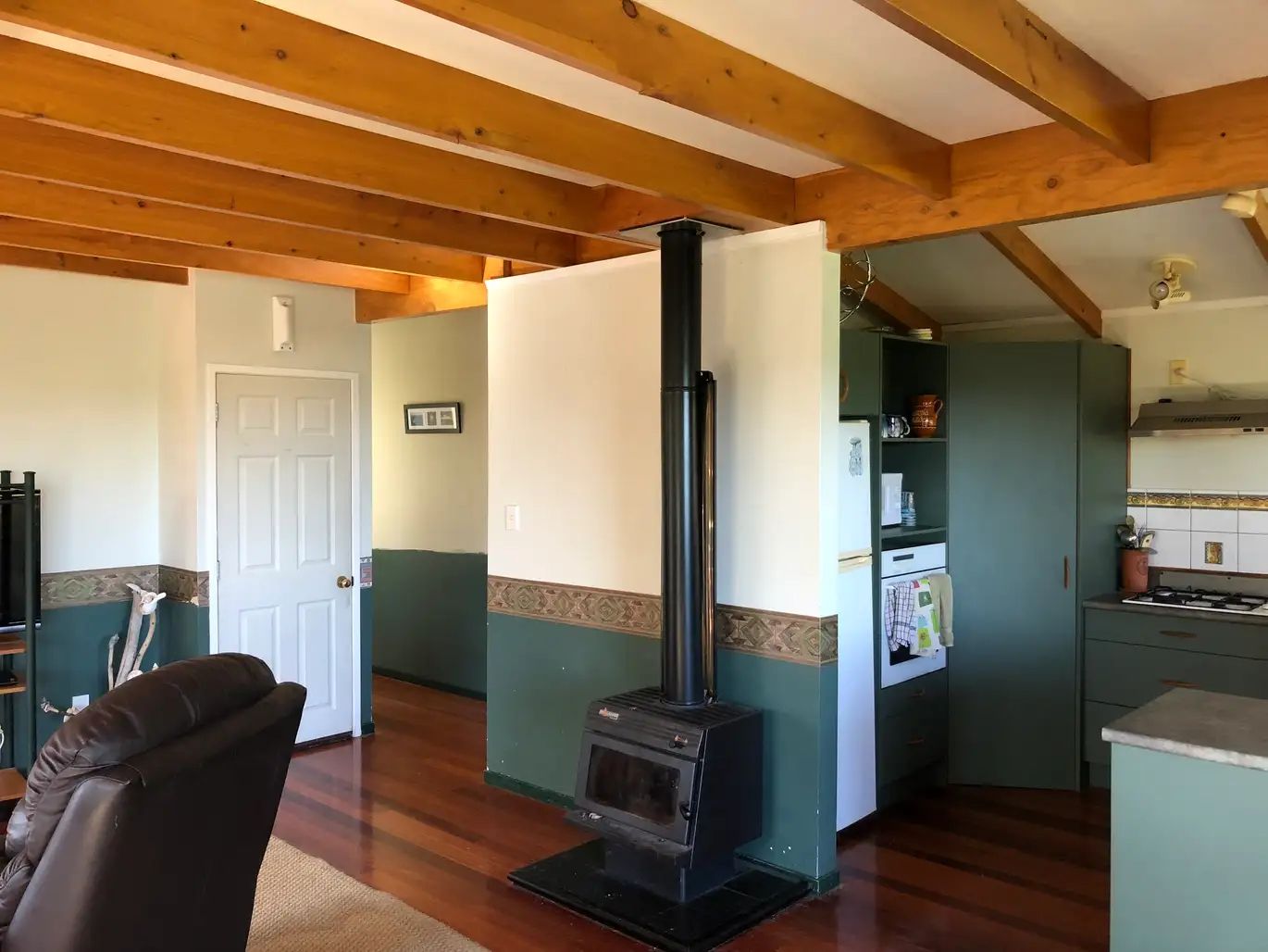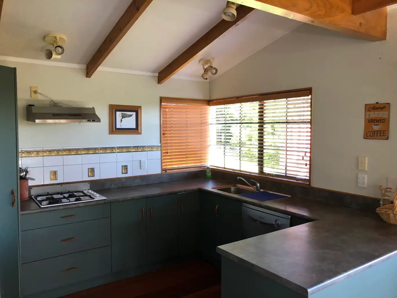 Lovely 4 bedroom home set on the hilltops of Whatuwhiwhi. Beautiful views of the beach. Two bedrooms upstairs, main bedroom has balcony, two bedrooms downstairs . Tongue and groove polished floors, wetback fireplace, two bathrooms and a large living area with indoor/outdoor flow onto the deck. Single garage. Lawns included.