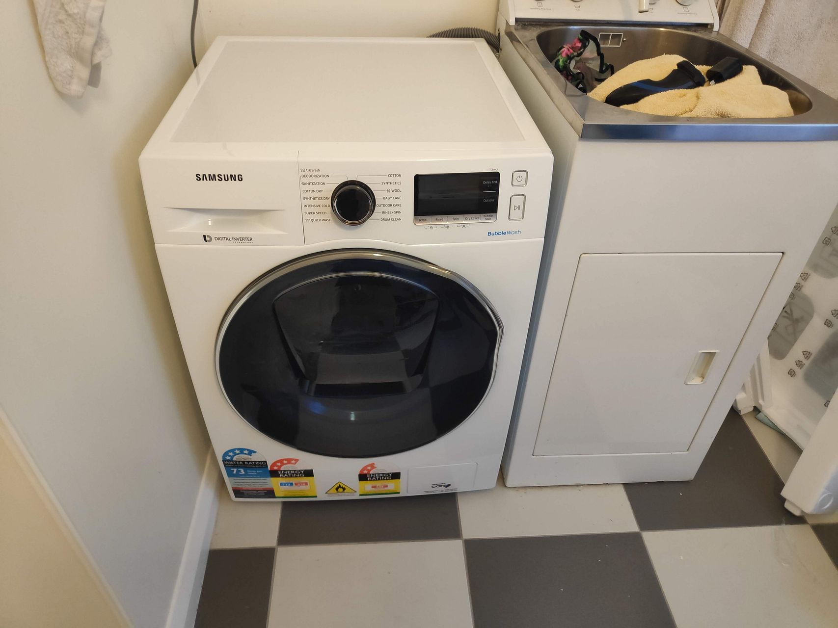 Energy efficient radiant electric heating and heat-exchange ventilation system, including under-floor heating in the bathroom. Also comes with an oven, fridge/freezer, and a washing machine/dryer.
