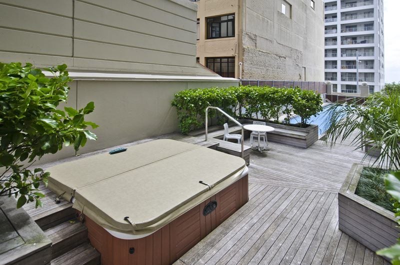 Residents enjoy an array of on-site luxuries including a fully-equipped gym, a serene courtyard, an expansive deck perfect for socialising, and a refreshing pool to unwind in after a busy day. The convenience of lift access ensures easy mobility throughout the building. Although there's no allocated parking, the central location means public transport is readily available, and many amenities are within walking distance.