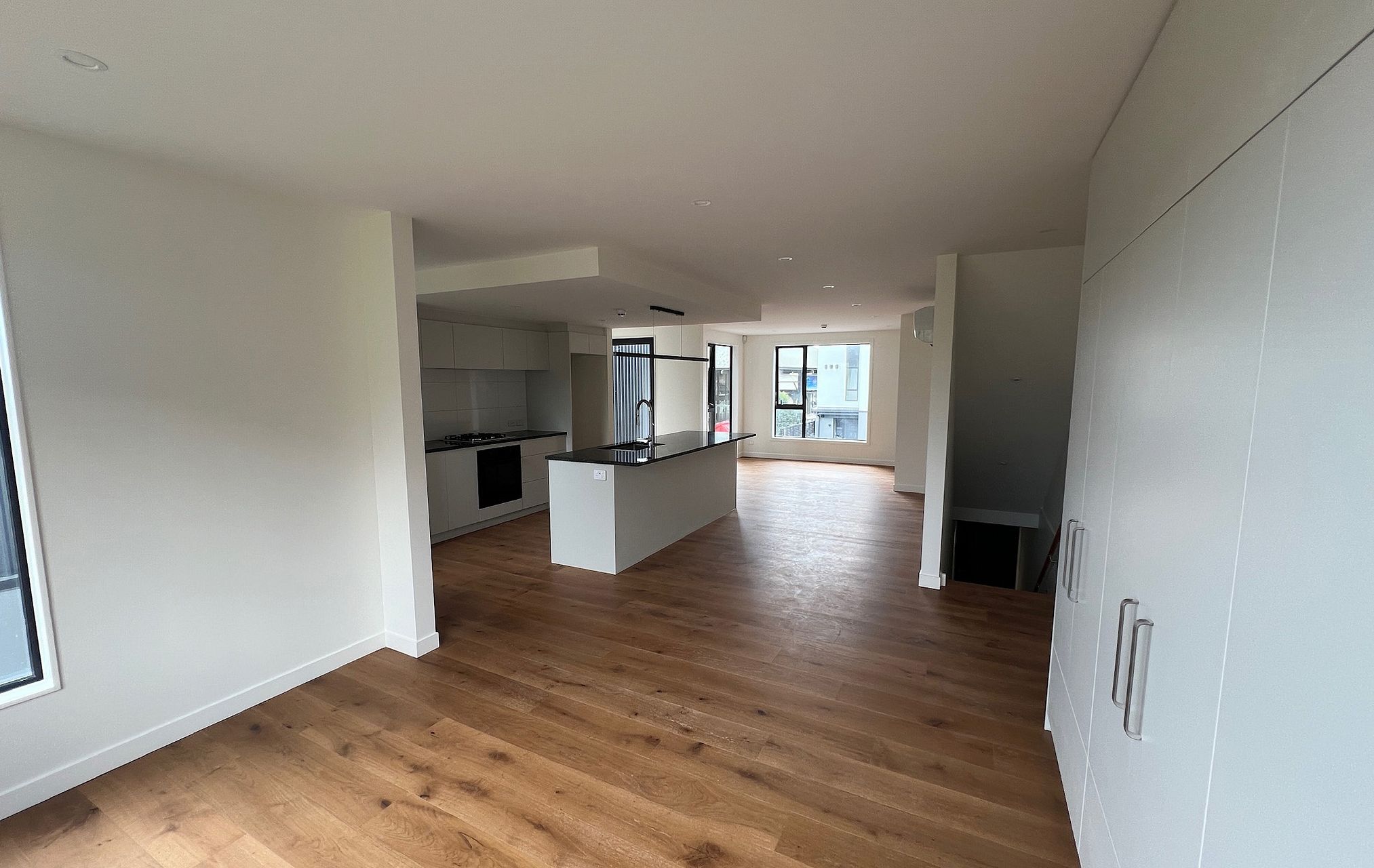 Downstairs a large, well appointed open plan kitchen, dining and lounge opens to the deck. The kitchen has a walk in butlers pantry, as well as large kitchen island and plenty of storage. The home has an internal access garage with laundry, plus an additional driveway carpark.