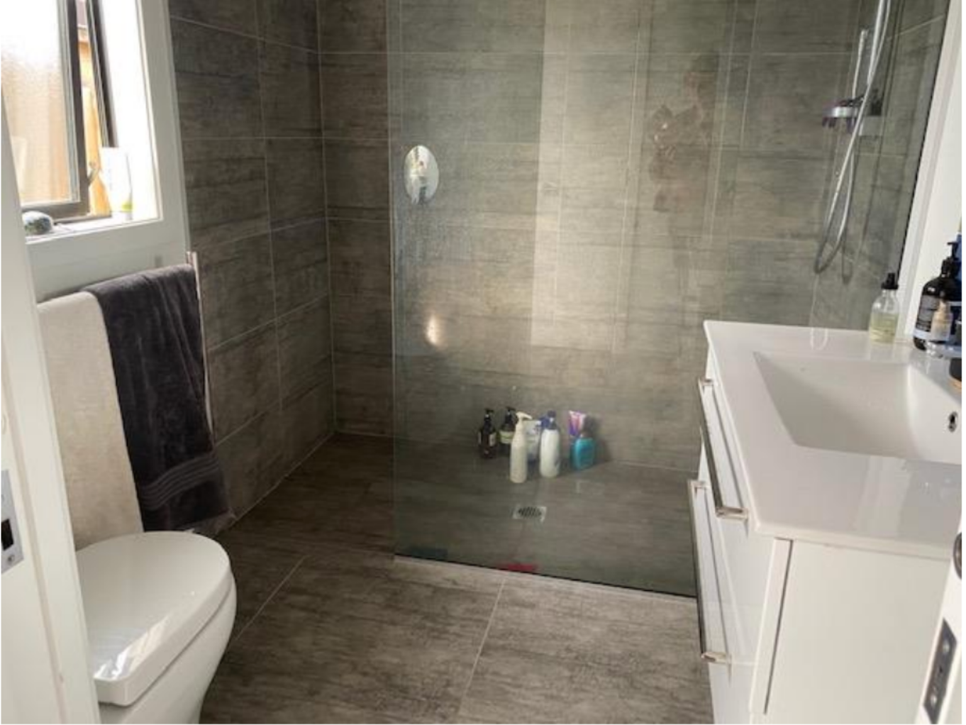 - Modern bathroom with large wet-room shower and rainhead