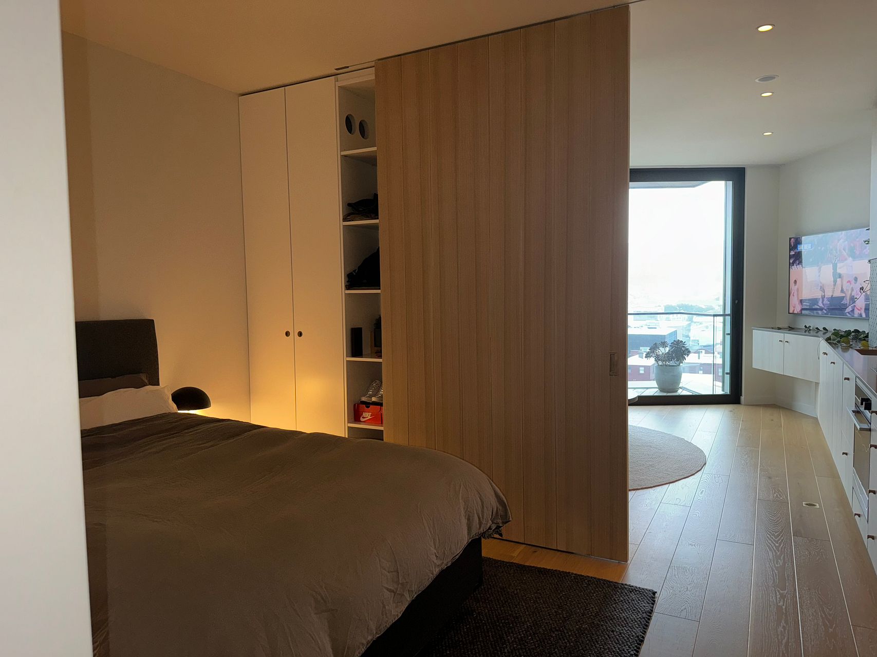 Step into this thoughtfully designed space adorned with stylish furnishings that perfectly complement the modern aesthetic. The apartment boasts ample storage solutions, ensuring a clutter-free environment. Its warm and quiet ambiance sets the stage for peaceful living in the midst of the city's energy.