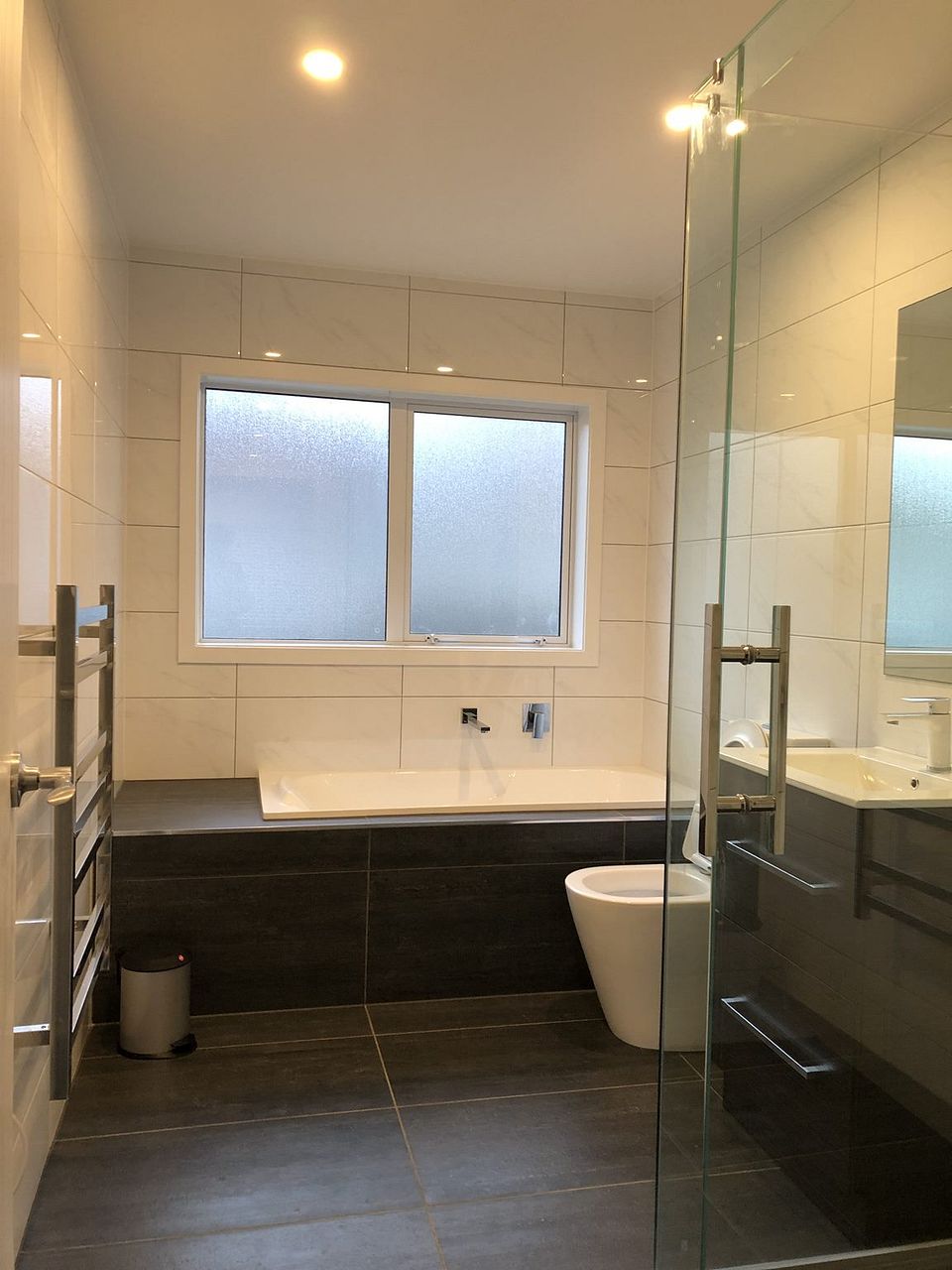 Separate living room and bathroom