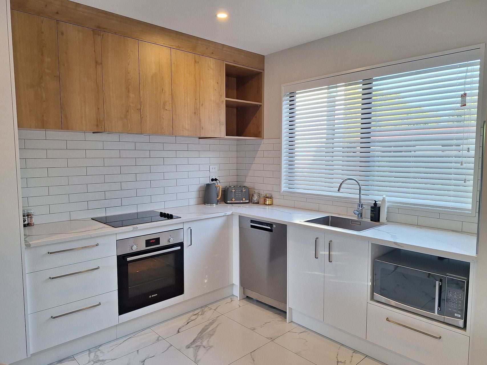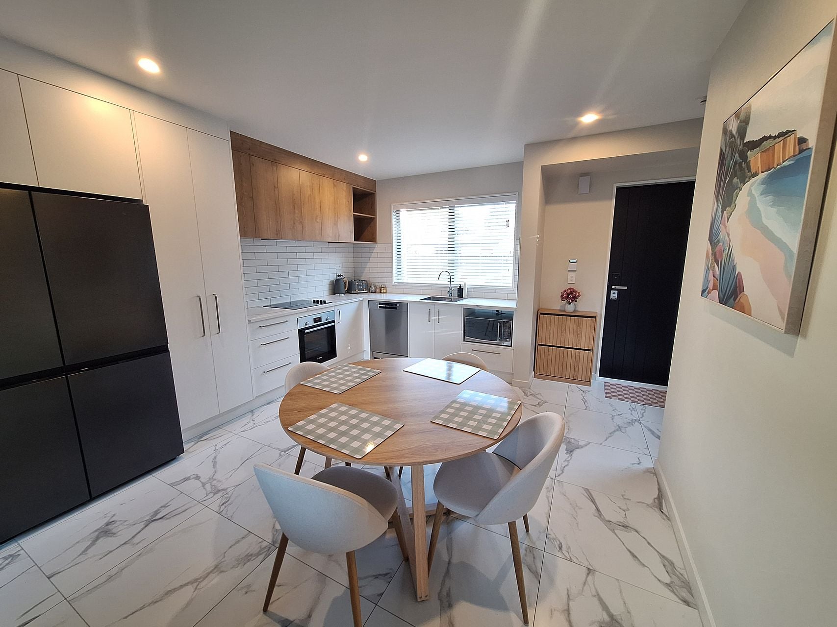 Downstairs offers sunny open-plan living and dining flowing to a private, easy-care courtyard, plus a modern, well-equipped kitchen and a super-handy guest toilet beside the living area.