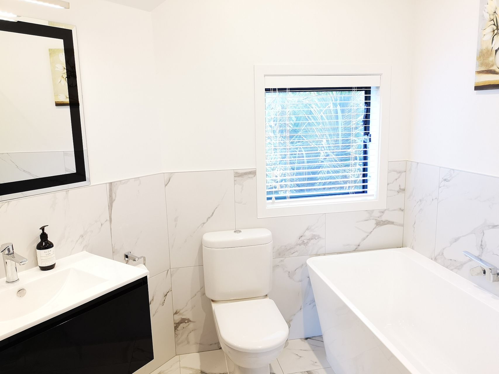 * Main bathroom with walk-in shower and separate bath