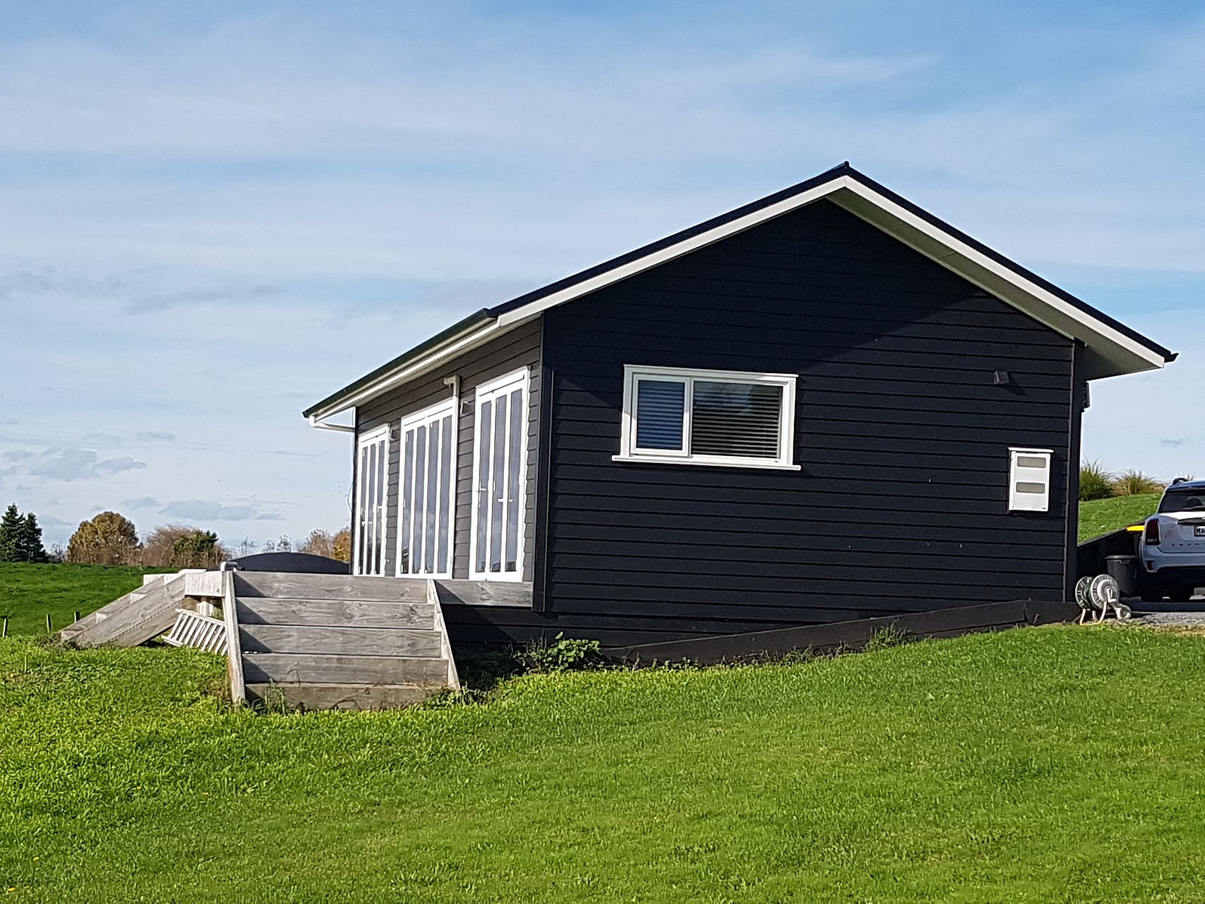 Two bedroom cottage, both with seperate ensuite bathrooms. Open plan kitchen and living with rural outlook via bi-fold doors opening up onto large deck area, fantastic for outdoor living. Huge parking area with garden shed that will be erected. Modern cottage with heat pump, dishwasher, and gas infinity hot water system via gas bottles. Fully insulated with double glazed windows. Small dog is ok but no cats or larger dogs.